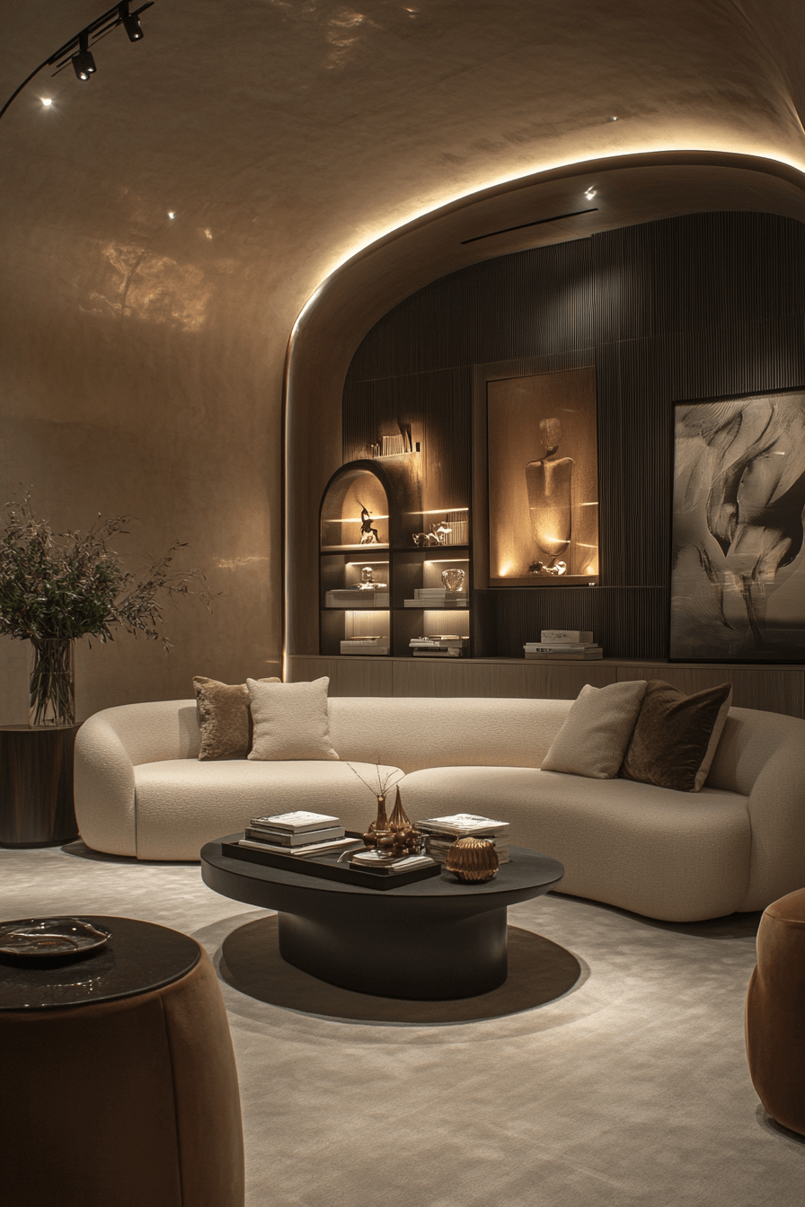 Smooth, flowing silhouettes take center stage in Neo Deco interior design, where graceful arches and rounded furnishings introduce effortless elegance. Curved doorways, circular mirrors, and sculptural seating soften strong architectural lines while preserving bold presence. The balance between glamour and comfort creates interiors that feel refined yet welcoming. Light dances across these rounded surfaces, amplifying depth and movement throughout the space. It’s a modern evolution of Art Deco influence that feels fresh and elevated. Tap to see how curves can completely redefine sophistication in your home!