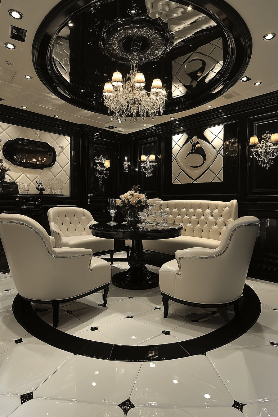 Symmetry combined with bold contrast defines the cinematic allure of Neo Deco interior design. Mirrored layouts in black and ivory or matte and gloss create structured harmony. Contrast injects energy while symmetry maintains composure. This approach suits living rooms, bedrooms, and hallways alike. The effect feels polished and powerful. Tap to discover how balance creates bold impact!