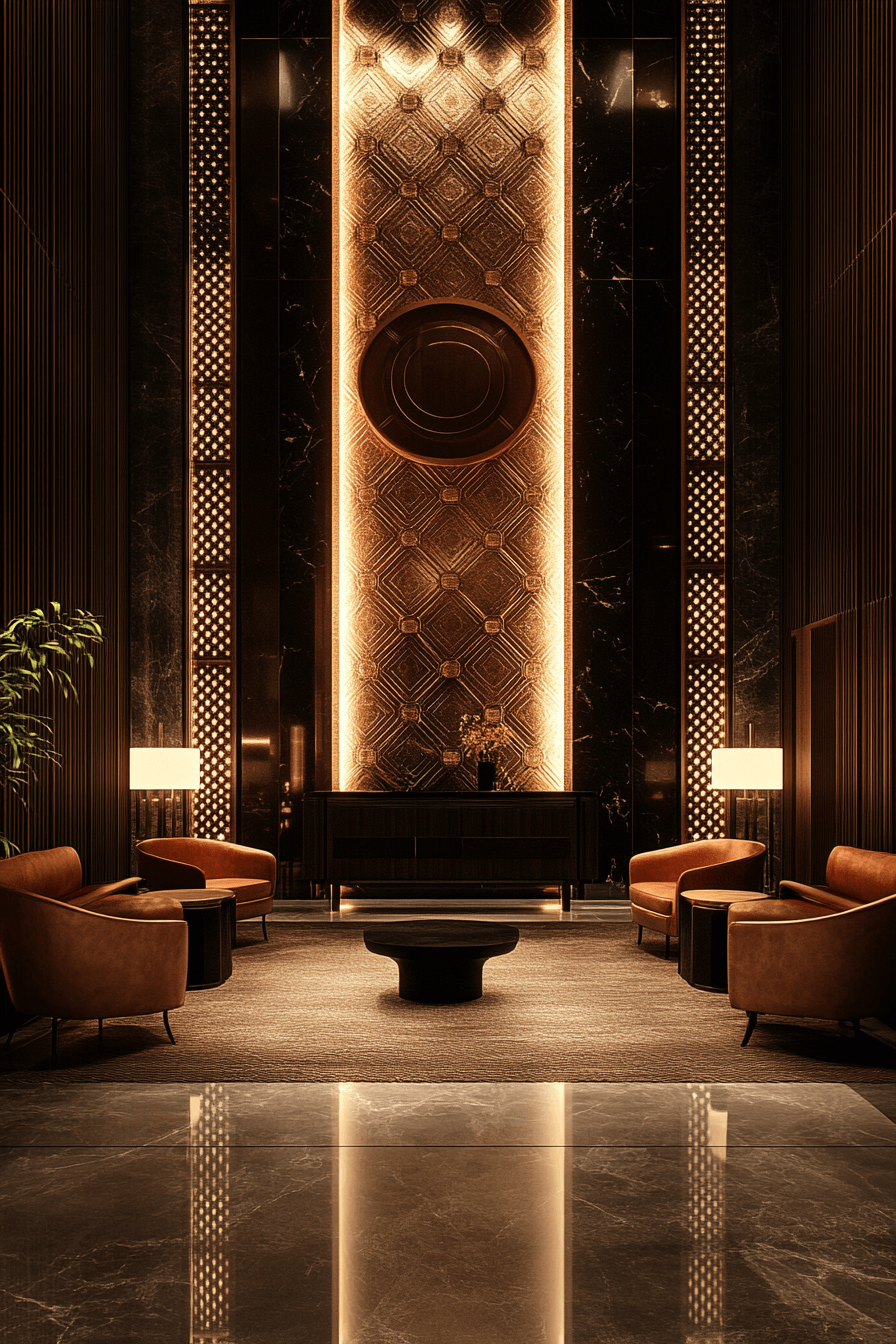 Statement surfaces redefine Neo Deco interior design by transforming walls into architectural features. Fluted wood panels, metallic wallpapers, and sleek lacquer finishes sculpt the room with intention. These bold backdrops add structure, dimension, and unmistakable luxury. Balanced with modern furnishings and warm lighting, the effect feels curated and immersive. Blank walls become powerful design moments rather than empty space. Click to give your walls unforgettable Neo Deco energy!