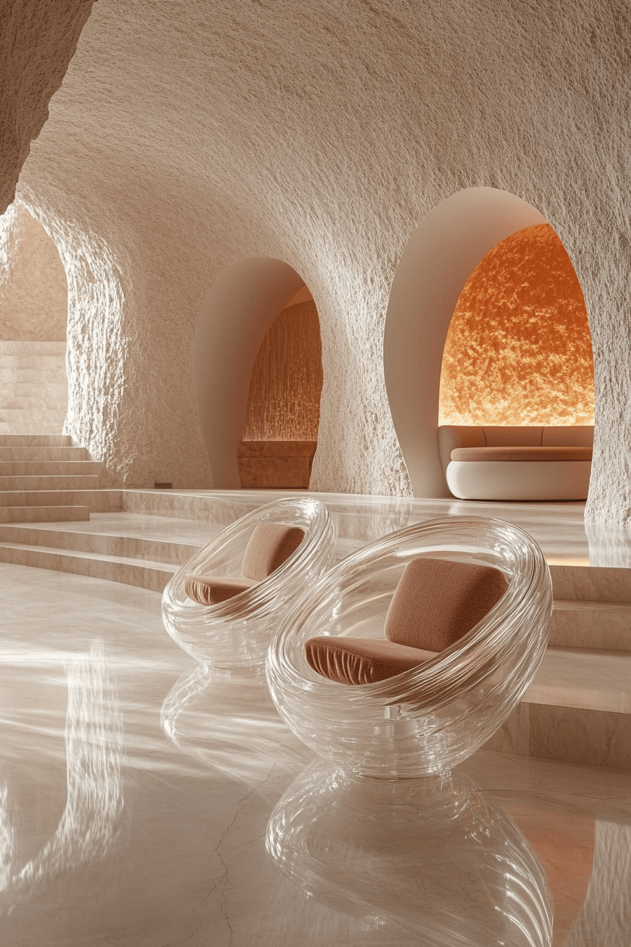 Futuristic interpretations propel Neo Deco interior design into bold new territory with abstract forms and daring proportions. Resin, acrylic, and unexpected finishes blur the line between art and furniture. Sculptural shapes command attention against minimalist backdrops. Clean lighting enhances their dramatic presence. This forward-thinking aesthetic feels fearless and imaginative. Tap to see how Deco evolves for tomorrow!
