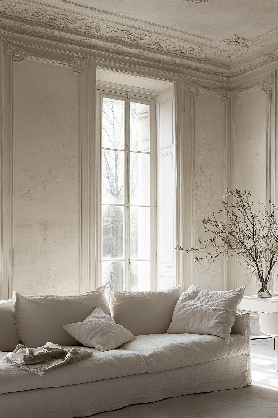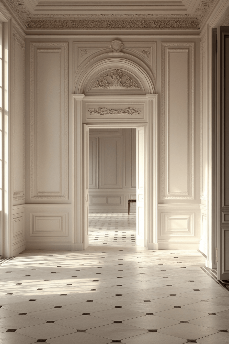 Carefully layered molding profiles add texture and depth to a neoclassical interior without overwhelming its simplicity. Tone-on-tone application creates subtle sculptural shadows. The repetition reinforces proportion and harmony. Decorative detail feels edited rather than excessive. Classical influence appears fresh and disciplined. Discover how minimal molding achieves maximum elegance.