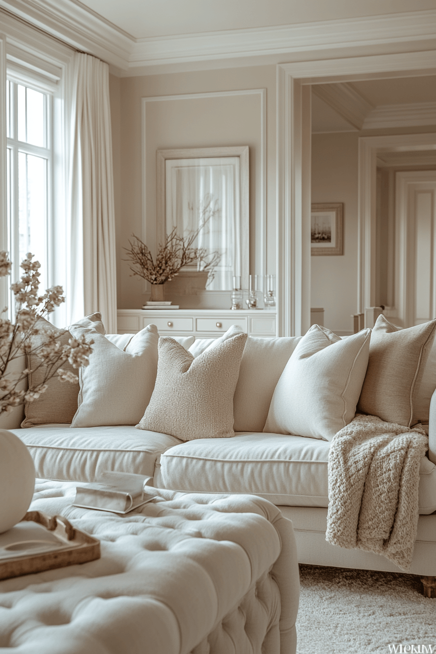 Muted ivory and sand tones set a serene foundation for a neoclassical interior, allowing ornate trim and architectural symmetry to take center stage. The restrained palette highlights craftsmanship without distracting from the room’s proportions. Layered textiles and subtle metallic touches introduce depth while maintaining calm cohesion. When paired with crisp white moldings, the effect feels timeless and elevated. This gentle color story reinforces balance, grace, and classical order. Discover how soft neutrals redefine refined living.