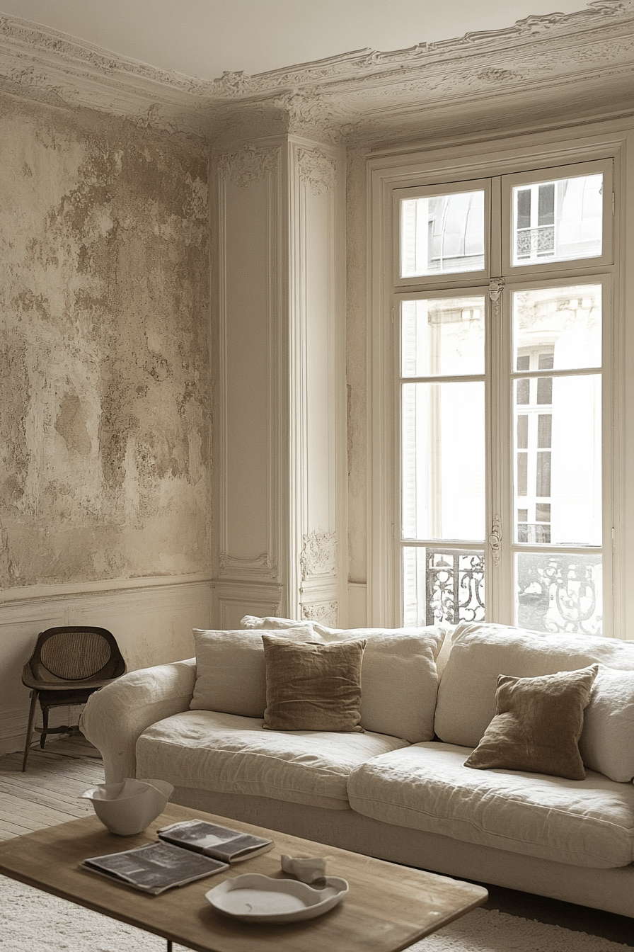 Textured finishes such as limewash or plaster add tactile interest to a neoclassical interior. Light plays beautifully across nuanced surfaces. The organic finish contrasts smooth moldings elegantly. Depth emerges without distracting from structure. The atmosphere feels layered and authentic. Introduce texture with classical refinement.