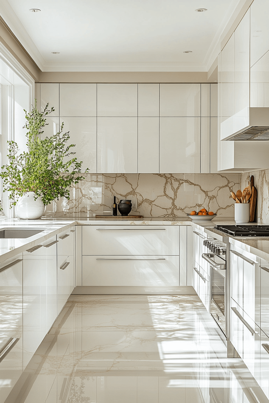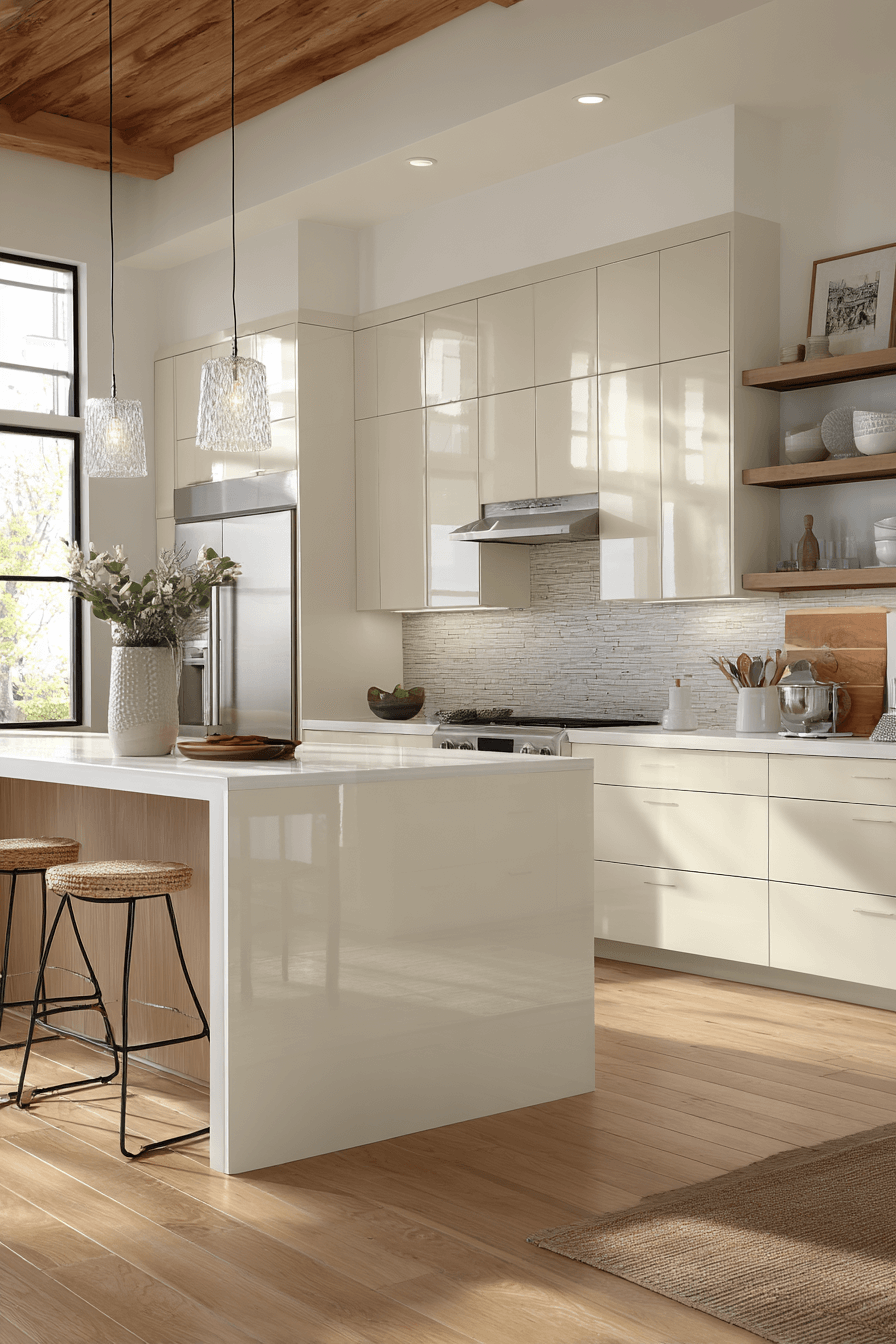There’s something instantly elevated about walking into a kitchen where the cabinets practically glow—glossy off white feels like the design equivalent of a sharp white button-down.