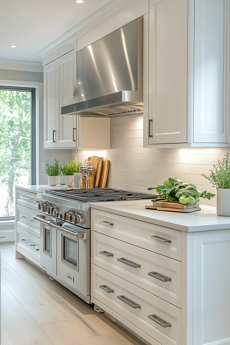 This look reads expensive without trying too hard—it’s the kitchen equivalent of a perfectly tailored white shirt with silver cufflinks.