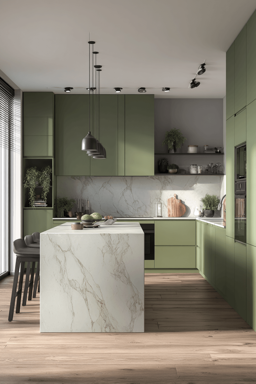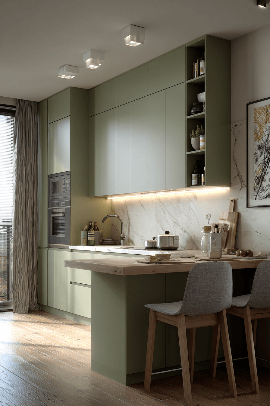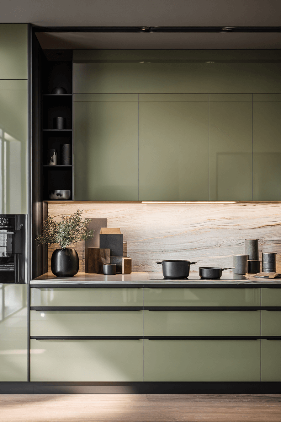 2. Streamlined Olive Kitchen Aesthetic