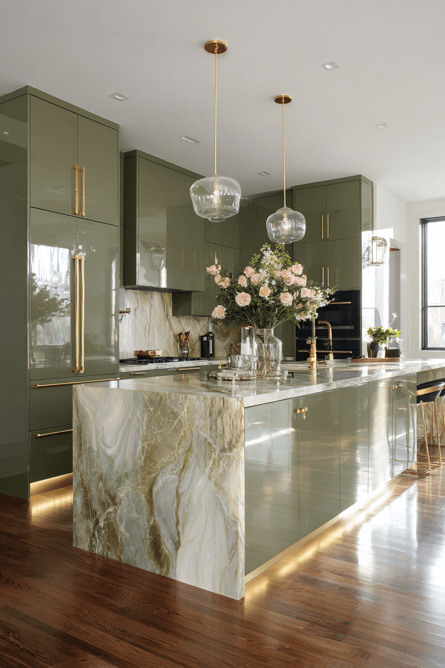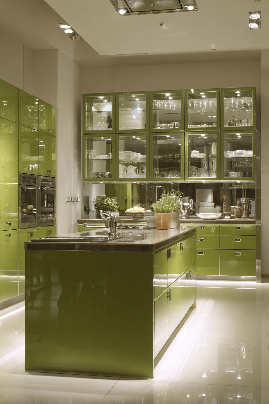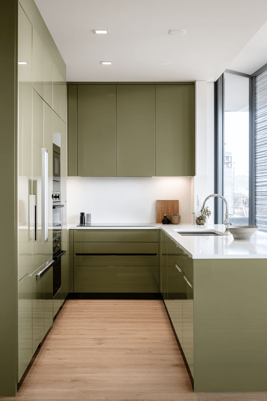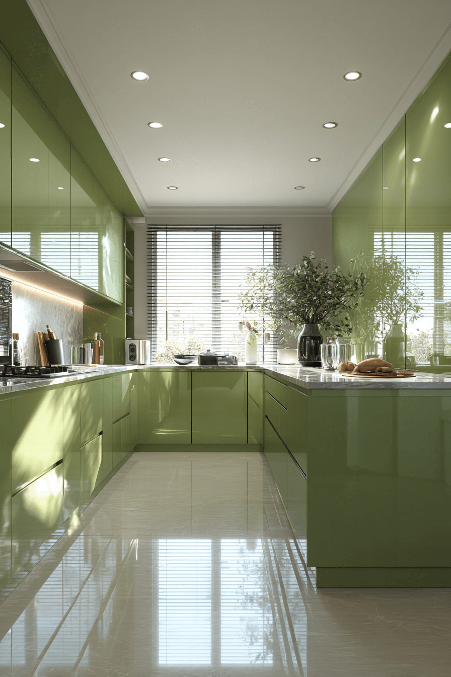 20. Glossy Olive Kitchen Finish