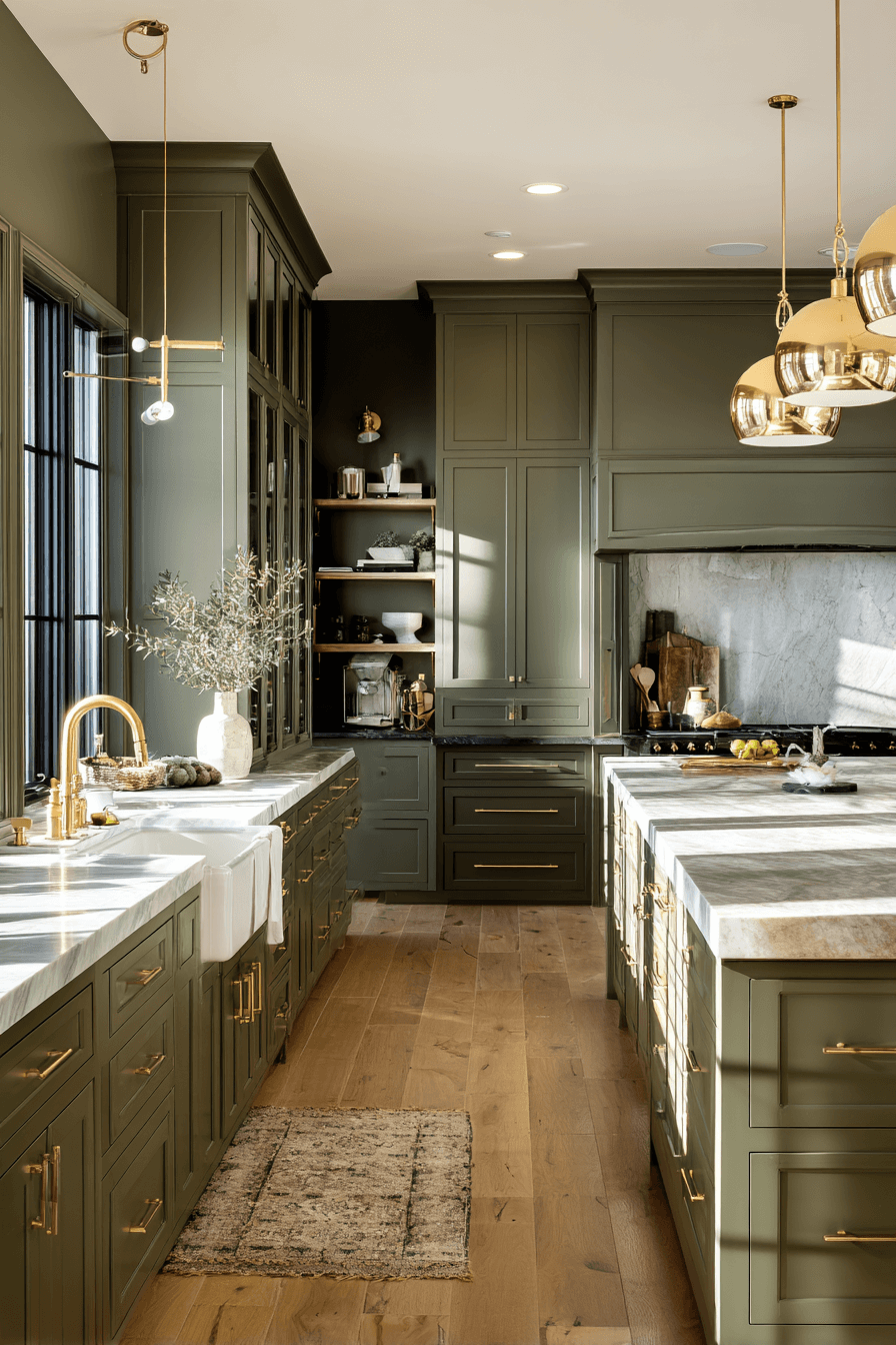 3. Olive Kitchen with Gold Accents
