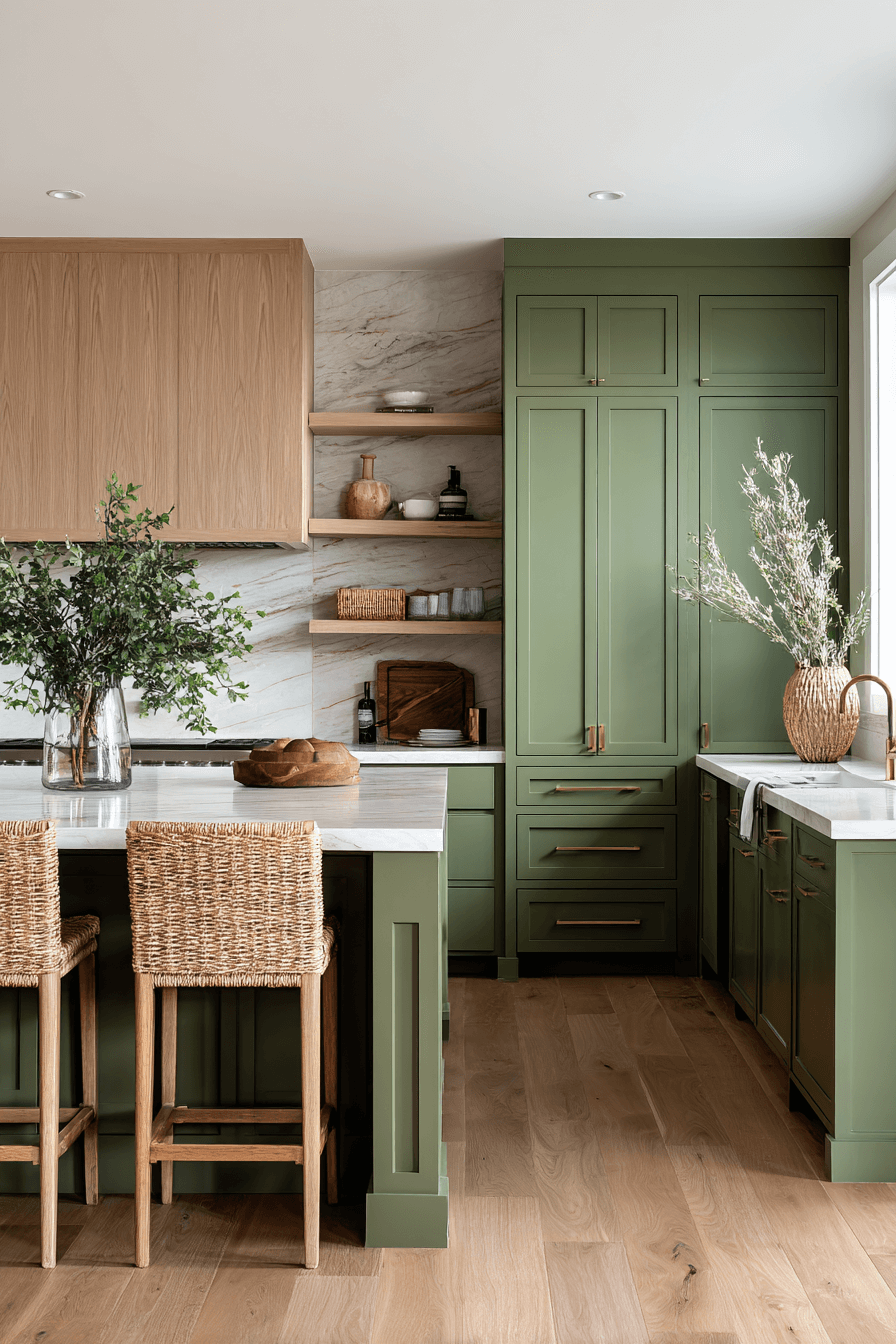 7. Olive Kitchen with Natural Wood