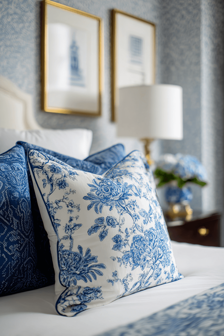 Elegant chinoiserie prints introduce depth and timeless character into a refined preppy bedroom. Blue-and-white motifs feel heritage-inspired yet fresh. Structured furniture and crisp trim frame the intricate patterns beautifully. Keeping the rest of the room simple allows the design to stand out. The overall effect feels graceful and polished within a preppy bedroom. Tap to incorporate classic global charm into your design.
