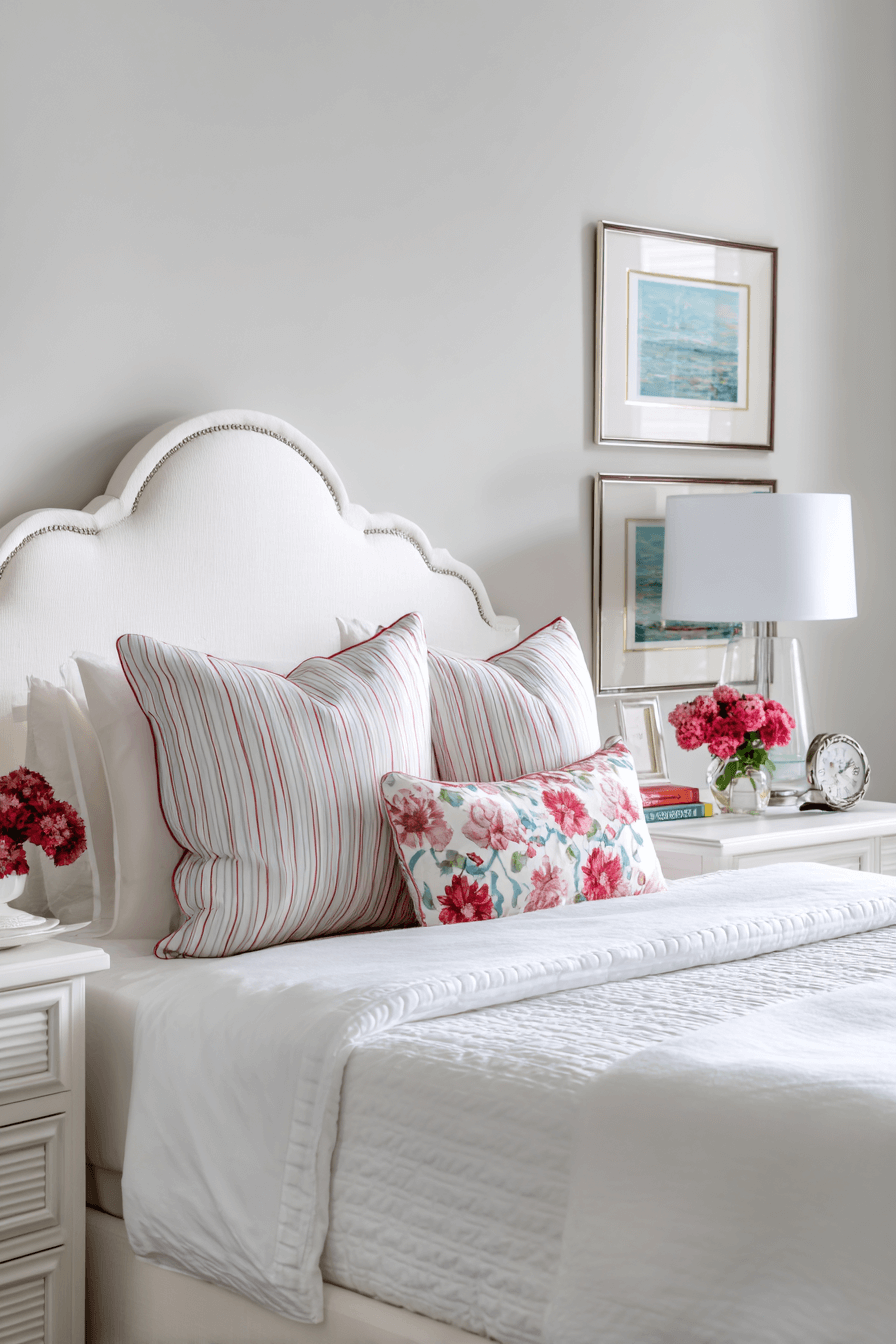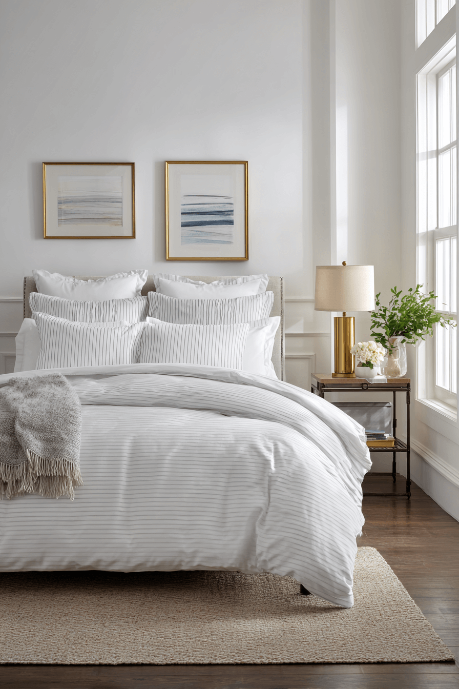 Pristine white bedding creates a clean and sophisticated canvas for a layered preppy bedroom. Structured throws and monogrammed accents introduce personality without clutter. Symmetry keeps the overall presentation neat and hotel-inspired. Subtle patterns provide depth while maintaining order. The simplicity enhances the tailored elegance of a preppy bedroom. Discover how crisp white layers can transform your space.