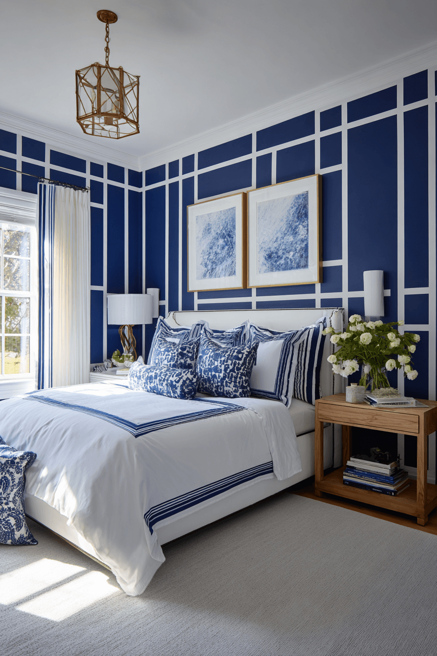 Statement wallpaper infuses personality and depth into a carefully curated preppy bedroom. Whether striped, floral, or lattice-inspired, patterned walls create instant impact. Crisp bedding and streamlined furniture maintain balance. Framed art and structured lighting complete the look with cohesion. The layered effect feels bold yet refined in a preppy bedroom. Explore how wallpaper can redefine your retreat.