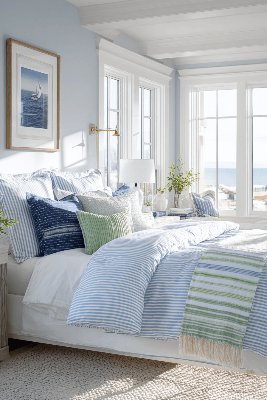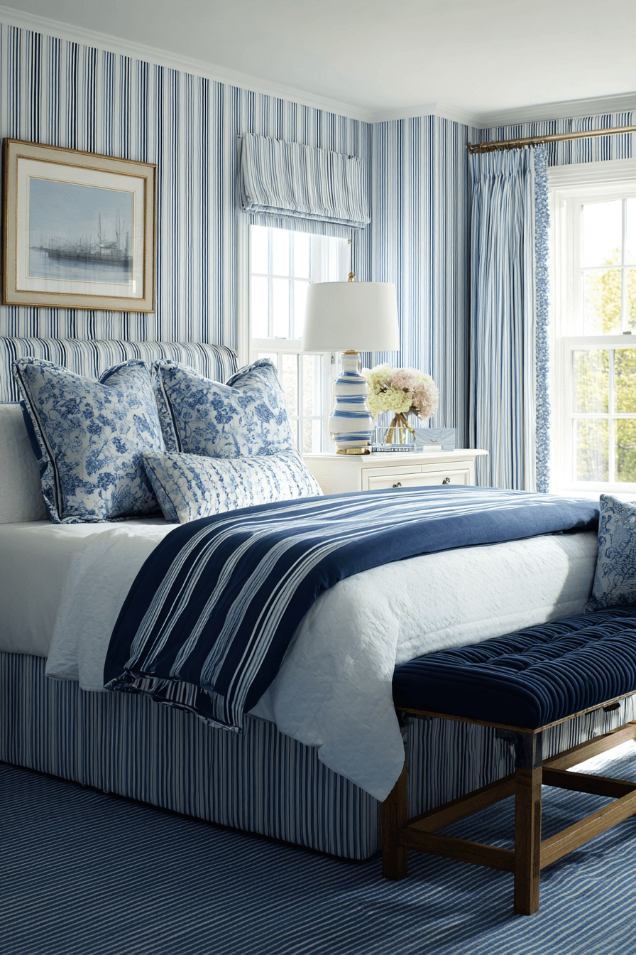 Stripes instantly introduce order and personality into a beautifully styled preppy bedroom. Whether woven into bedding, wrapped across walls, or featured in a bold rug, they create visual rhythm with ease. Classic color palettes like navy, white, or soft pastels keep the look cohesive and polished. Crisp linens and streamlined accessories enhance the structured vibe. The result is a preppy bedroom that feels tailored yet welcoming. Click to discover how stripes can energize your space with effortless charm.