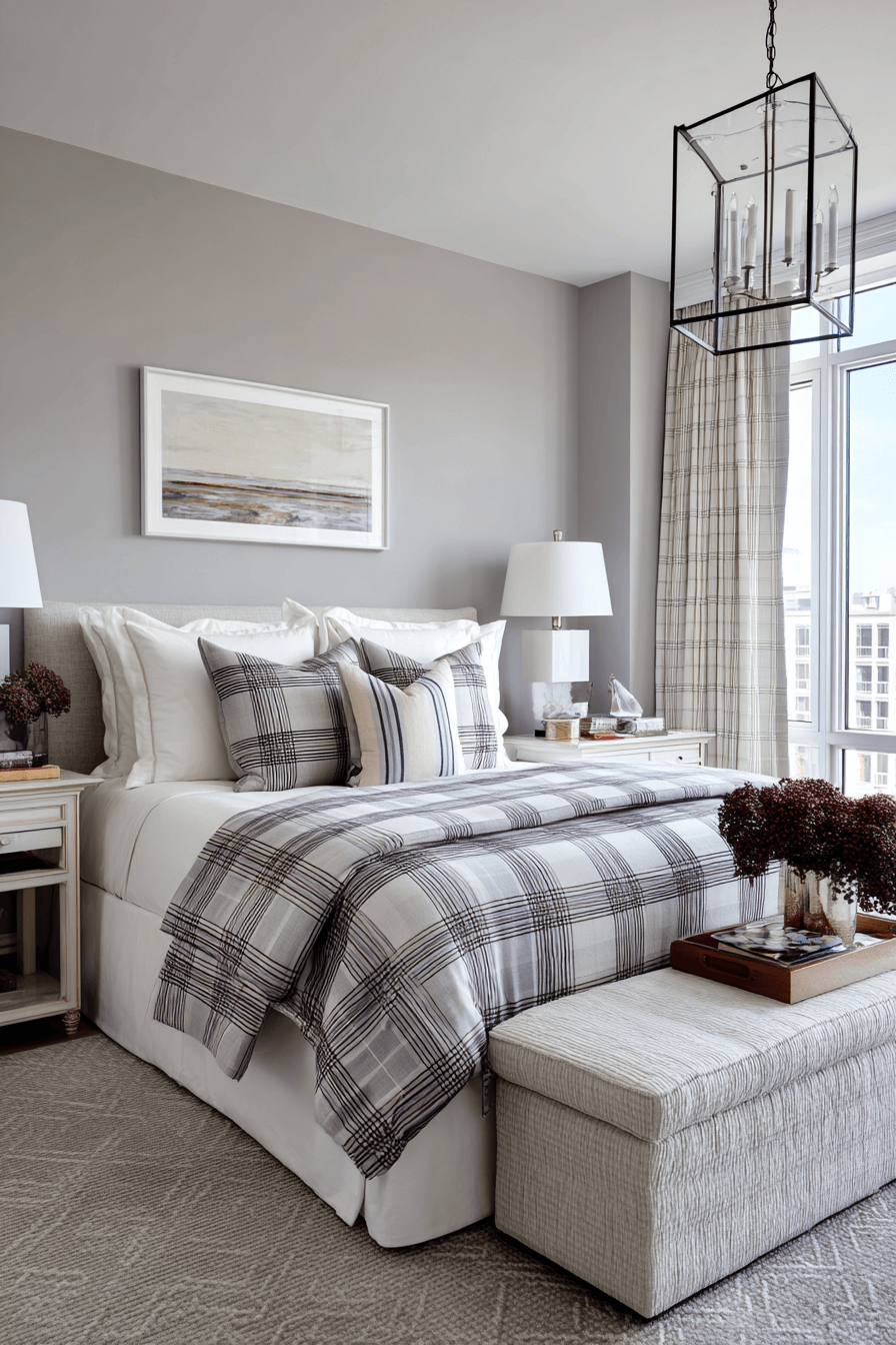Classic plaid introduces heritage and tailored charm into a beautifully styled preppy bedroom. Whether layered on bedding or incorporated through accent seating, it adds structure instantly. Keeping surrounding tones simple allows the pattern to shine without overpowering the room. Solid layers create harmony and balance. The result is a polished preppy bedroom filled with collegiate-inspired elegance. Click to see how plaid can refine your bedroom aesthetic.