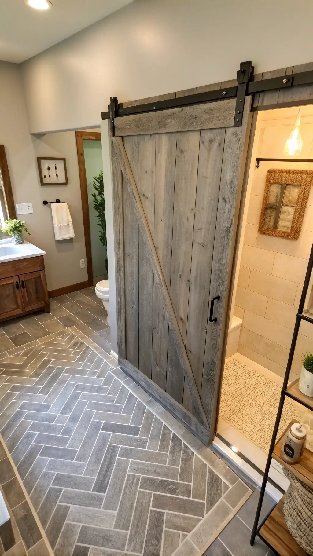 - Barn door-style sliding bathroom door