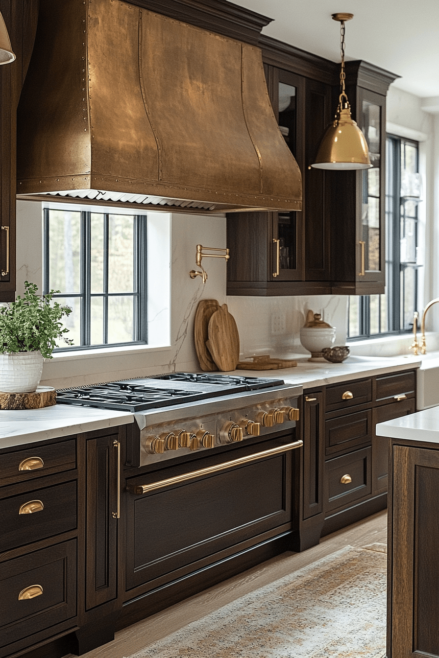 There’s something quietly confident about a kitchen that doesn’t chase brightness—dark walnut cabinets feel like they’ve been there forever and will outlast every trend.