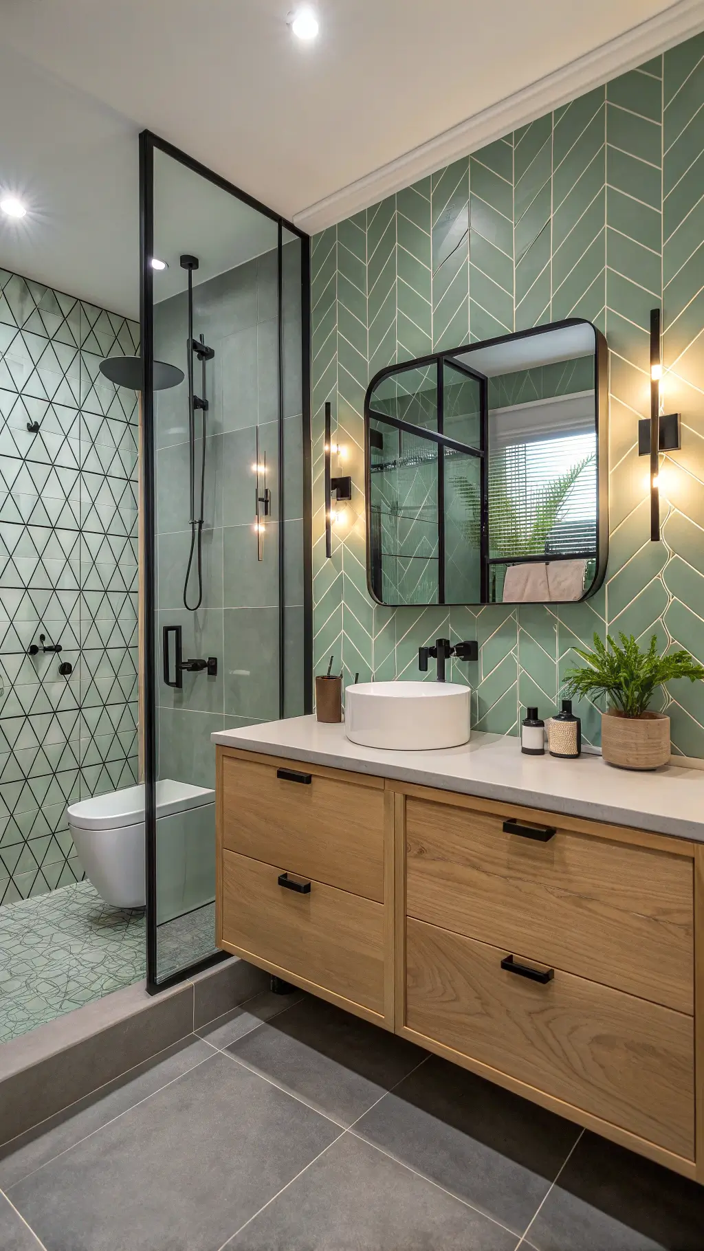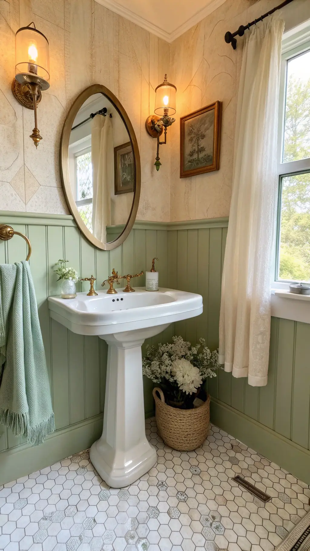 - Choose sage green paint or tiles