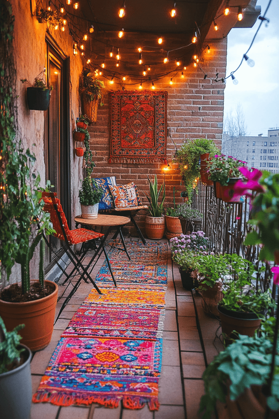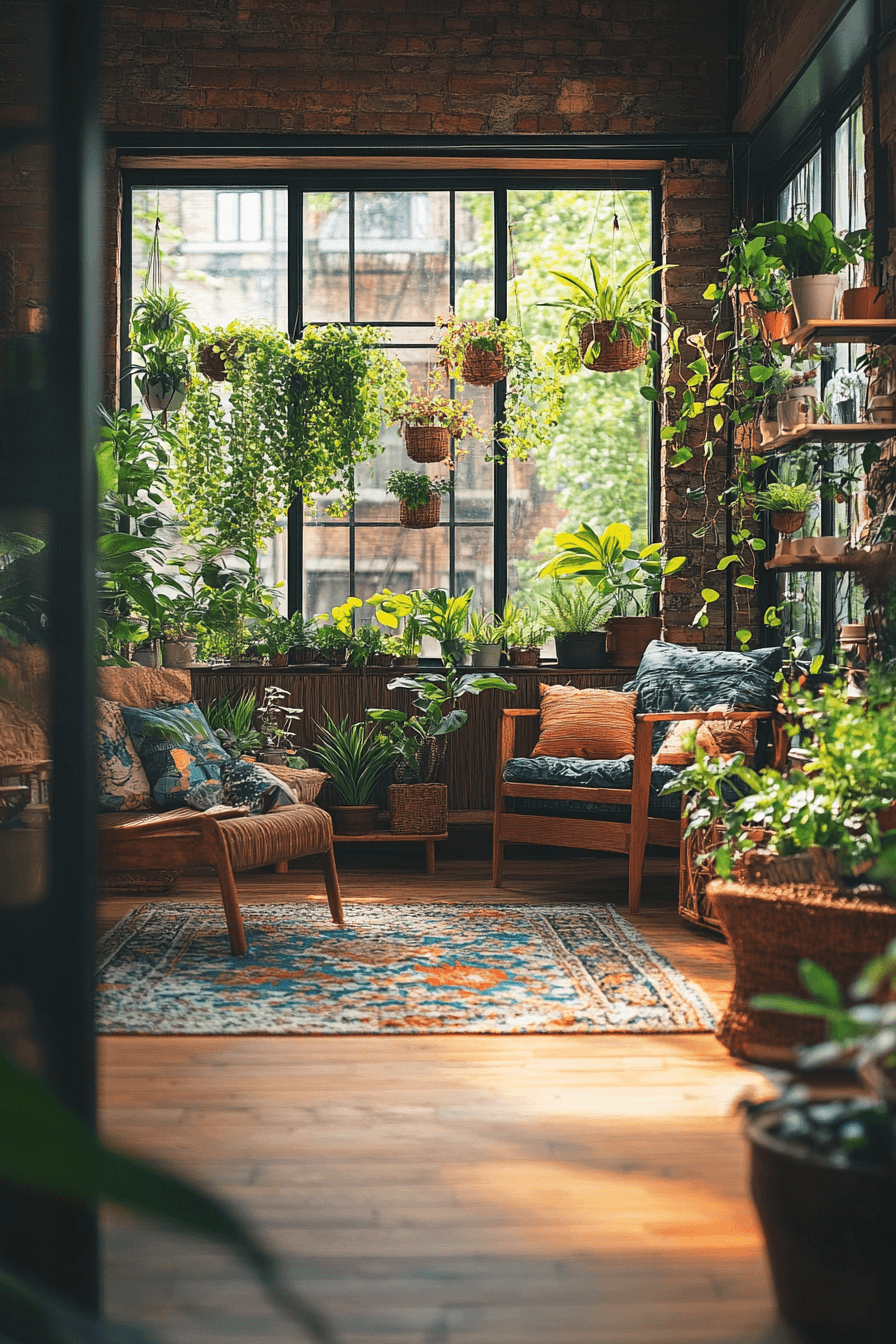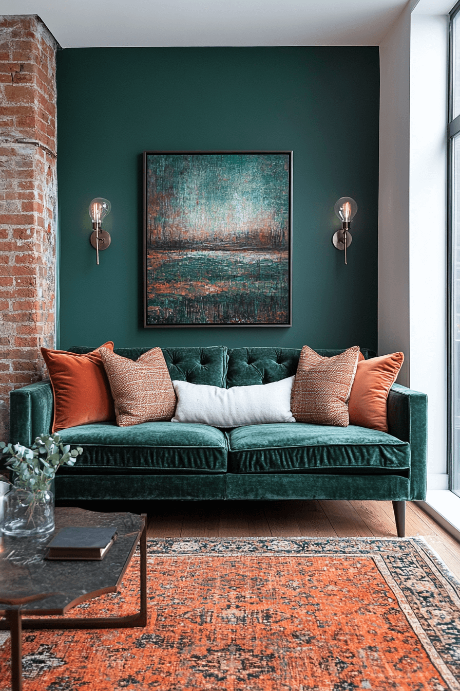 Bring energy with bright hues and lively prints. Colorful rugs, patterned pillows, and plants create an uplifting, dynamic atmosphere.