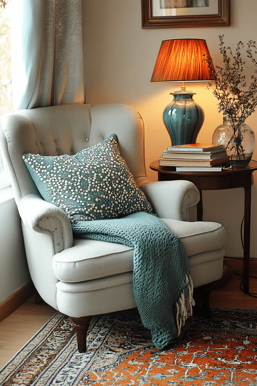 Turn unused nooks into cozy retreats with warm lighting, soft cushions, and rich colors. A small table or art piece personalizes the inviting corner.