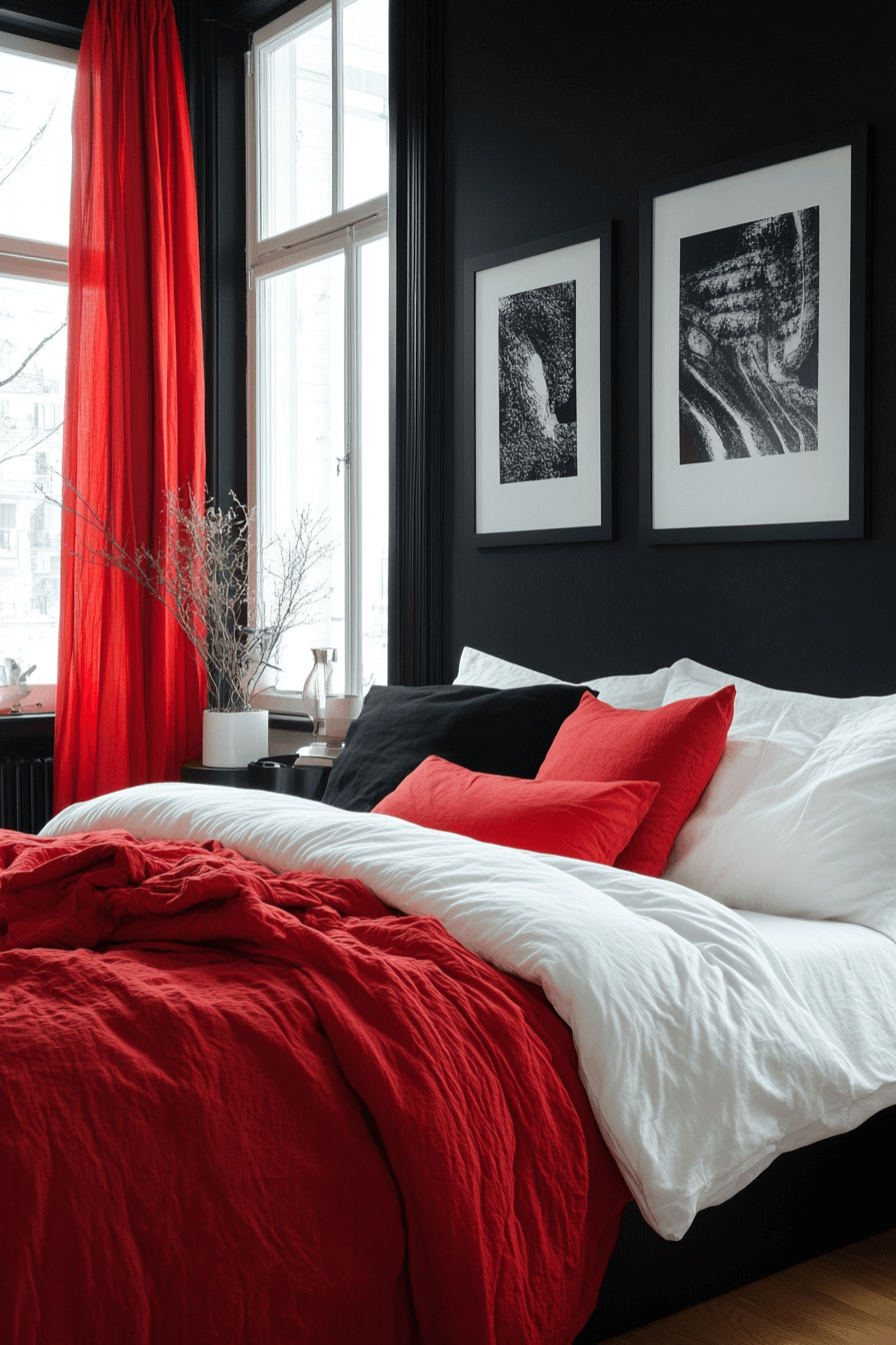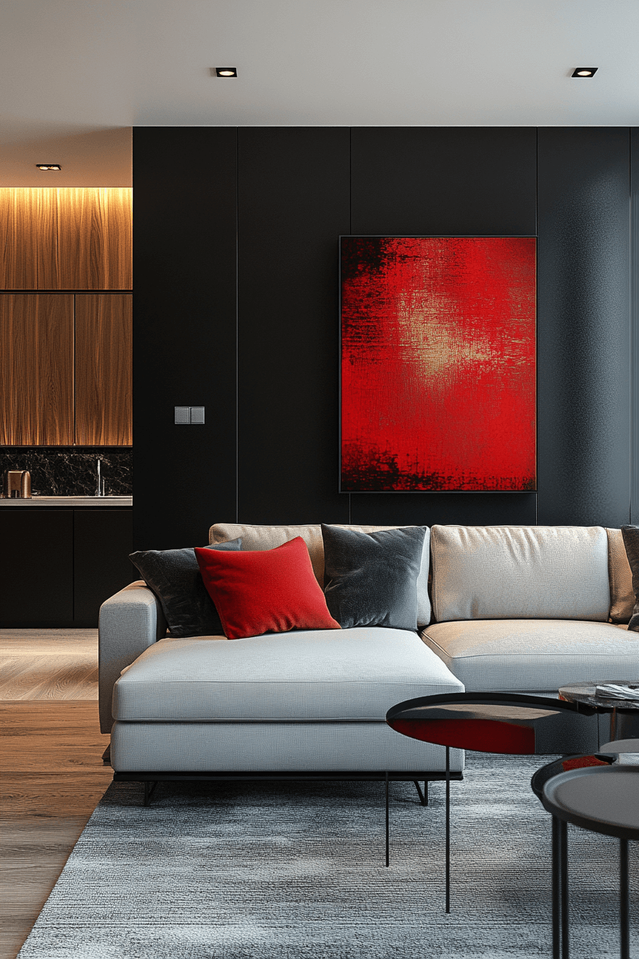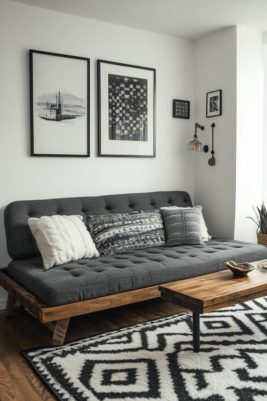 Pair bold contrasts like black and white for high-impact style. Geometric rugs or two-tone walls add drama while keeping the design crisp and cohesive.