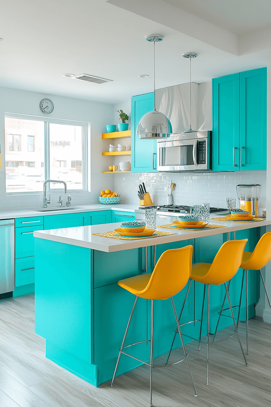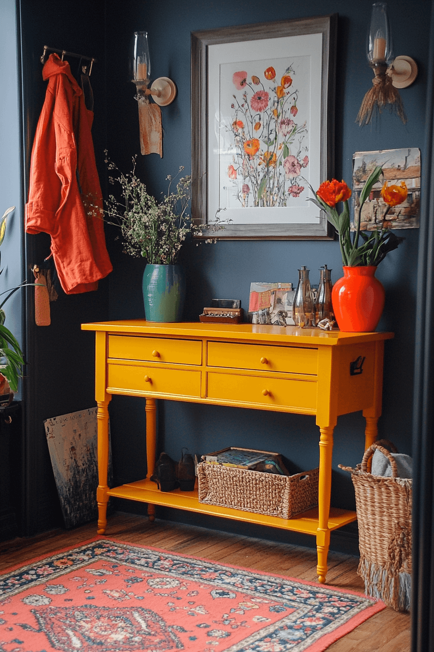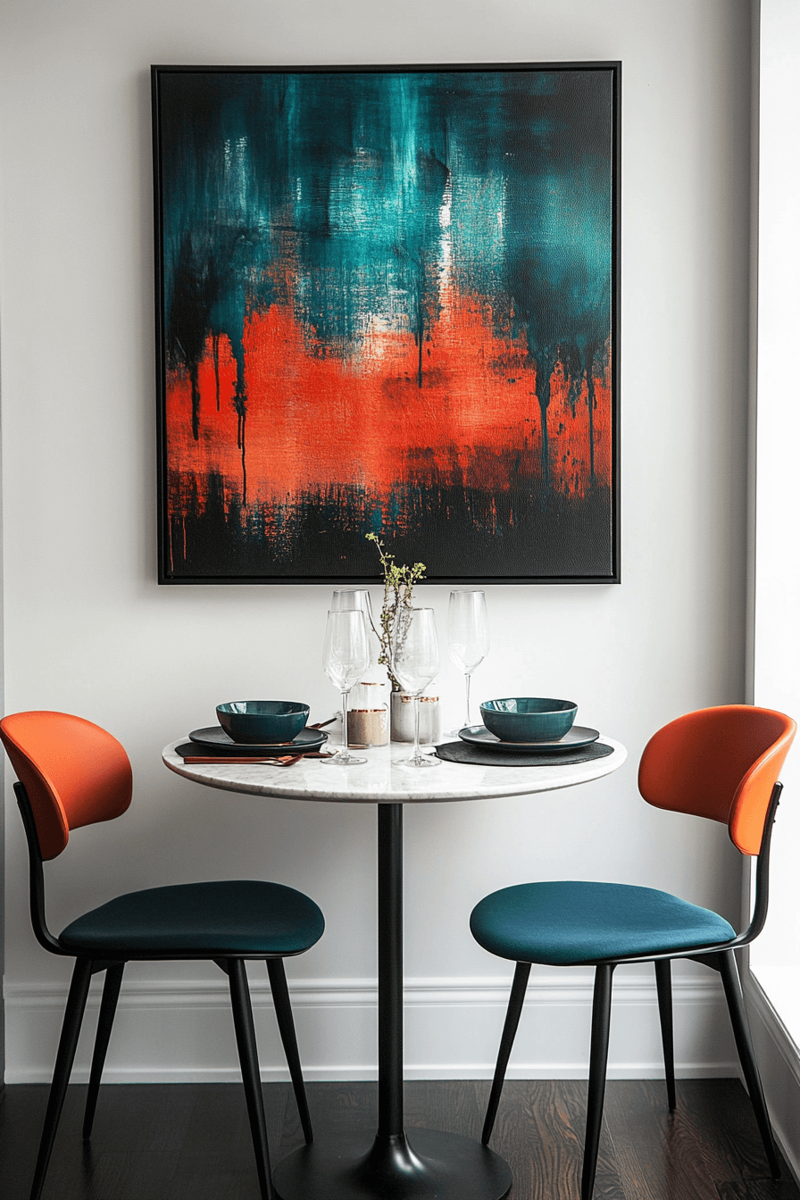 Treat every inch as a design opportunity with vibrant hues and unique layouts. Art in unexpected places and bright accents create a dynamic, personal canvas.