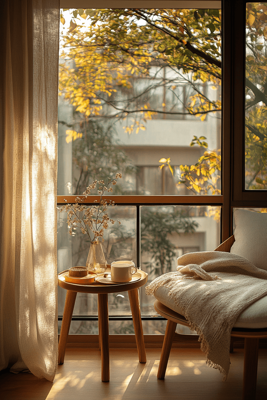 Golden tones and soft lighting create a warm, dreamy balcony perfect for relaxation. Gentle glows enhance the space during sunset hours. These small balcony decor ideas highlight natural light beautifully. Warm materials complement the lighting for a cohesive look. Minimal decor keeps the focus on ambiance. A small table adds function without clutter. The mood feels soothing, warm, and peaceful. Discover your golden hour setup.