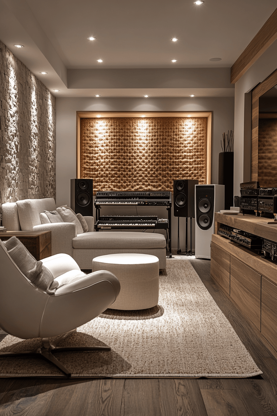 A music-focused setup can make a basement both creative and functional. This small basement ideas approach balances equipment with clean design. Organized layouts keep everything accessible. Soft textures reduce noise and add comfort. Lighting enhances usability. The space feels inspiring and dynamic. Build your own creative zone.