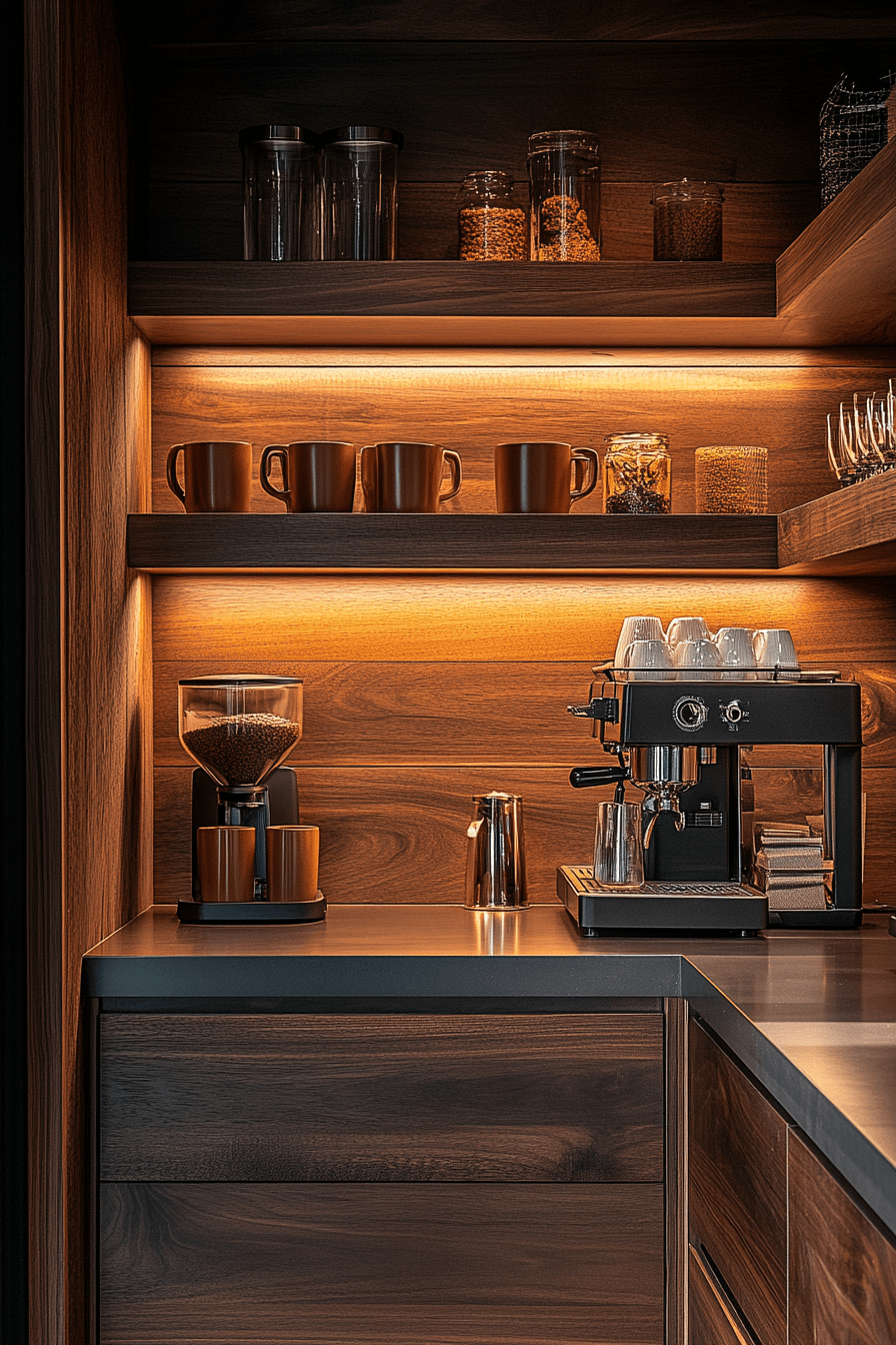A small coffee corner can add charm and function to a basement. This small basement ideas design uses simple shelving and warm tones. Compact layouts keep everything efficient. Soft lighting enhances the welcoming feel. Minimal decor maintains clarity. The space feels practical and cozy. Add a daily-use feature to your basement.