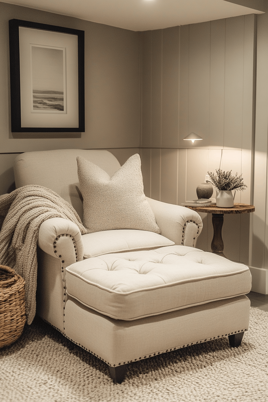A cozy reading corner can transform a basement into a quiet escape. This small basement ideas design uses shelving and soft seating to create comfort. Warm lighting adds to the inviting atmosphere. Neutral tones keep the space visually calm. Textured materials enhance the cozy feel. The environment feels peaceful and focused. Design a retreat for reading and relaxation.