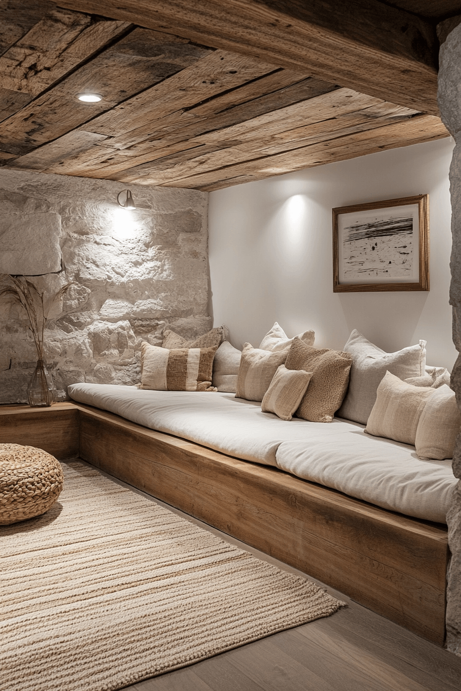 Natural elements can create a calming and balanced basement design. This small basement ideas style focuses on simplicity and organic textures. Wood, stone, and soft fabrics work together to build harmony. Minimal decor keeps the space uncluttered. Gentle lighting enhances the peaceful feel. The result is soothing and grounded. Create a space that promotes relaxation.