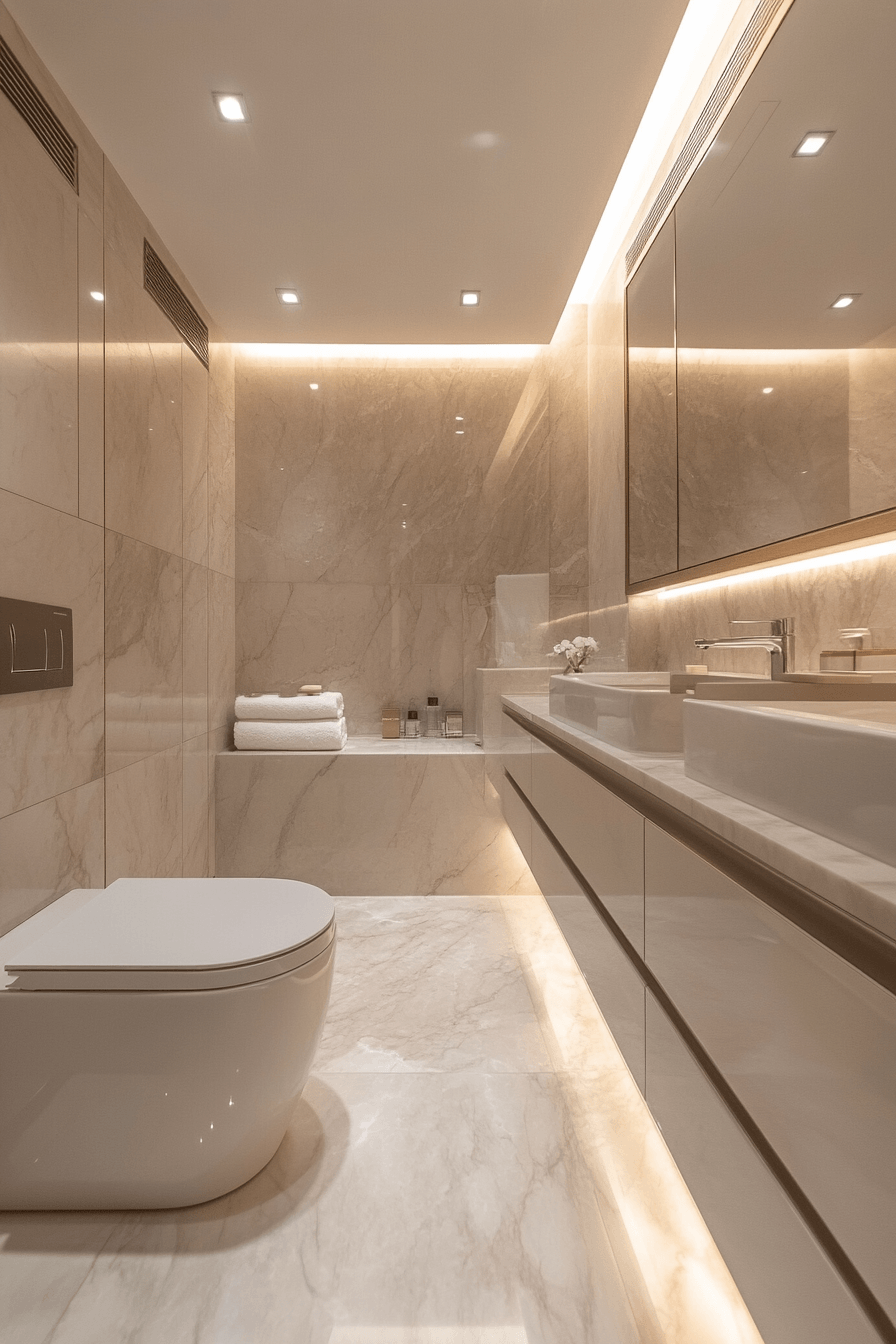 Classic marble elements create a timeless look that feels both luxurious and elegant. Reflective surfaces enhance small luxury bathroom layouts by brightening the room. Clean lines maintain a modern feel. Subtle veining adds visual interest. Minimal decor keeps everything balanced. The mood feels sophisticated and enduring. Embrace timeless marble style.