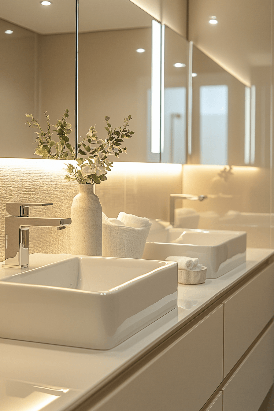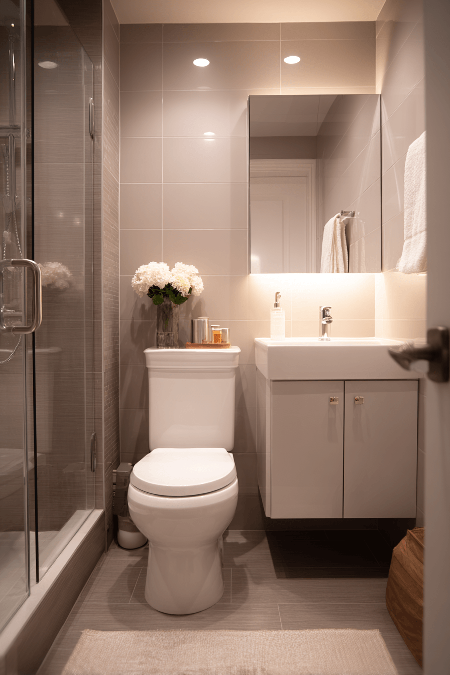 Mirrors expand the visual space, making compact bathrooms feel larger and brighter. Reflective surfaces enhance small luxury bathroom styling by amplifying light. Minimal decor keeps everything open. Strategic placement improves depth. Soft lighting adds warmth. The mood feels spacious and elegant. Transform your space with mirrors.