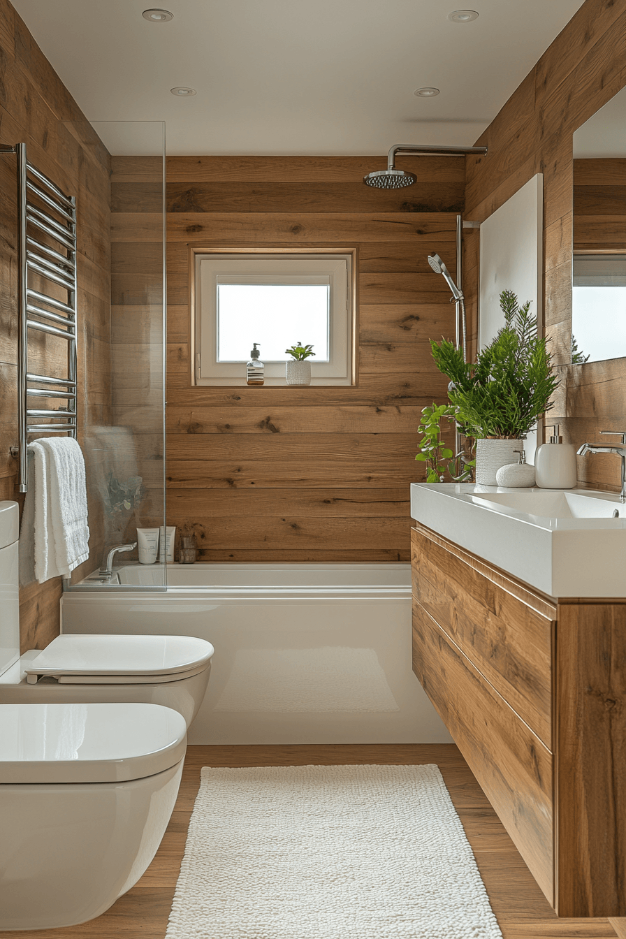 Warm wood tones introduce a natural softness that balances sleek finishes. Organic textures enhance small luxury bathroom designs by adding comfort and depth. Light finishes keep the space bright. Clean lines maintain modern appeal. Subtle grain patterns add interest. The mood feels cozy and elevated. Add natural warmth to your bathroom.