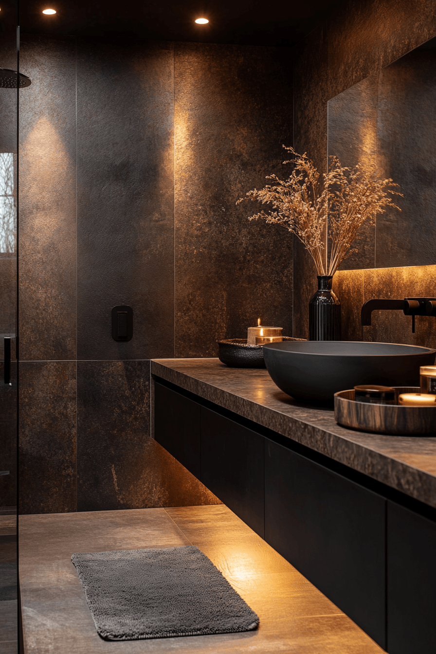 1. Dark Luxe Bathroom Retreat