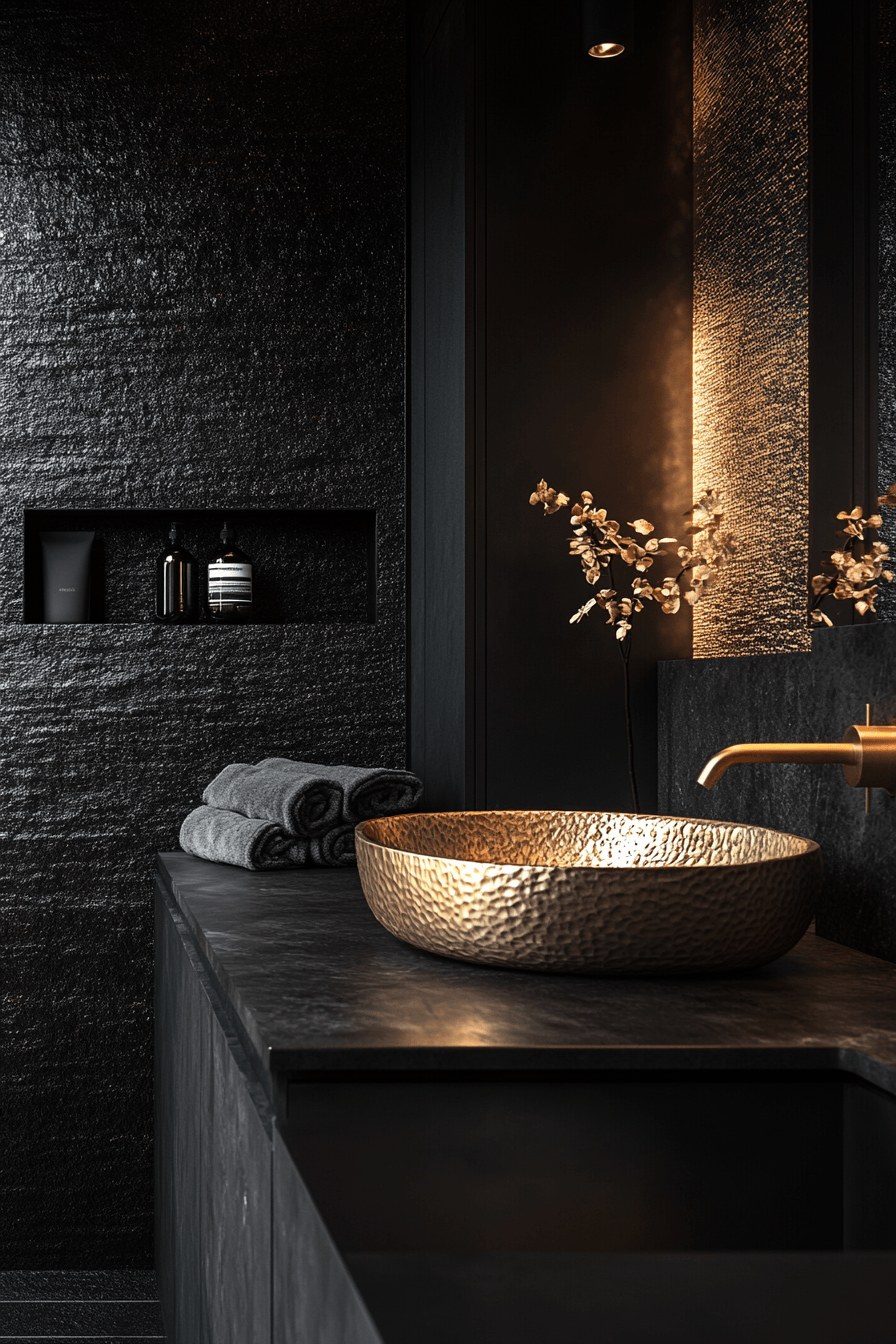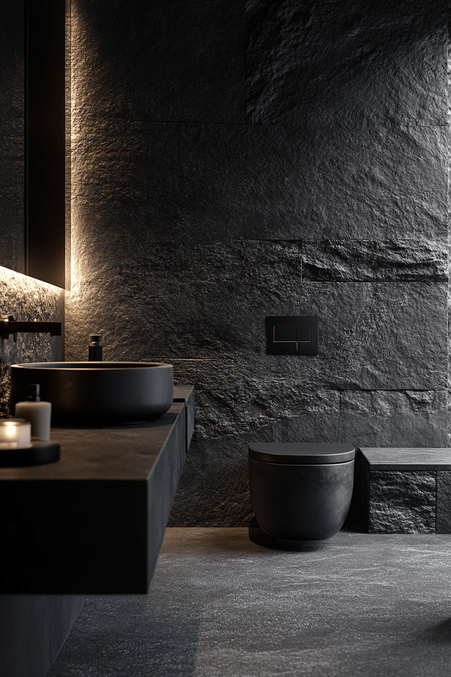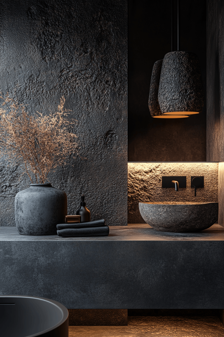 24. Noir Texture Bathroom Interior