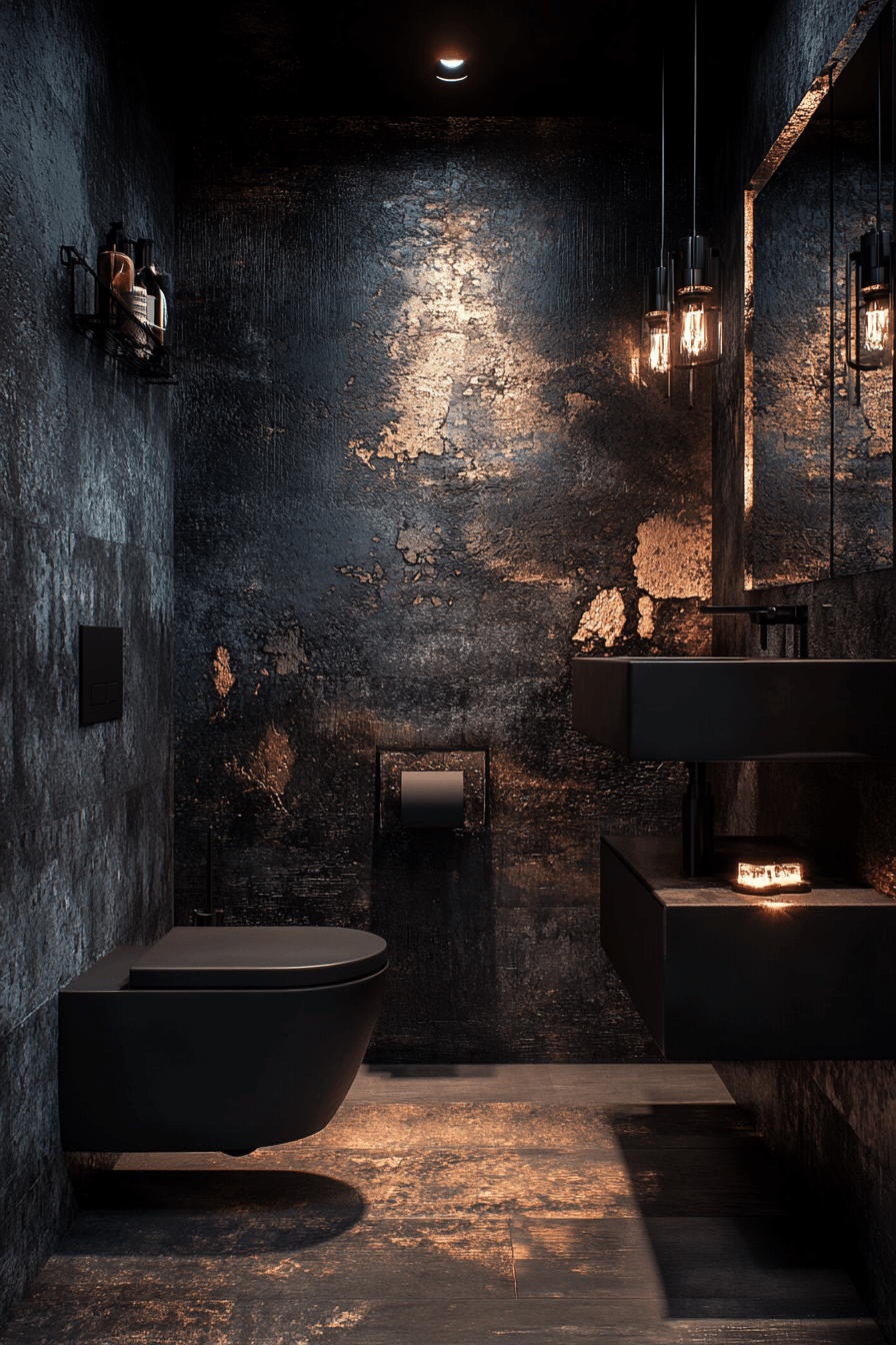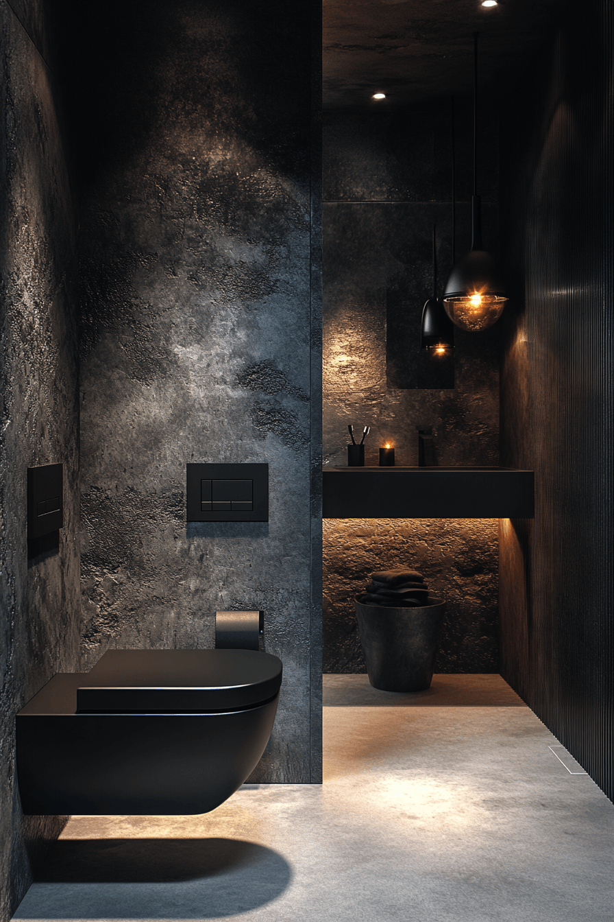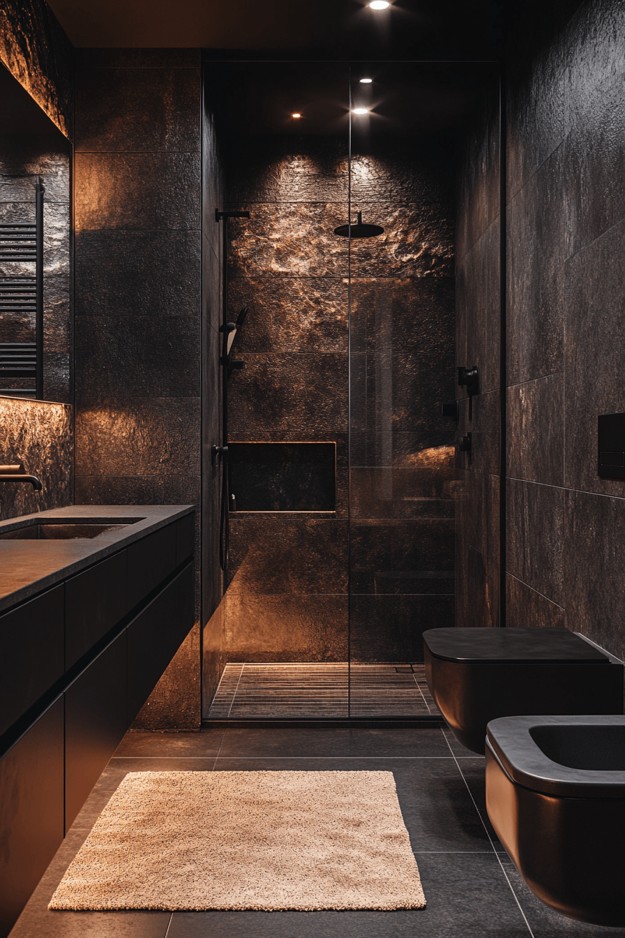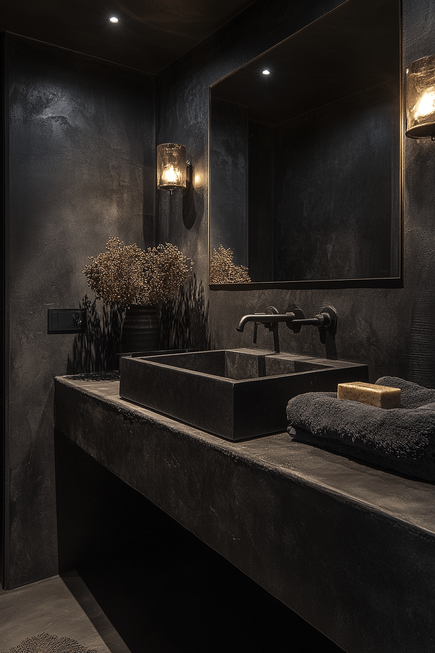 24. Noir Texture Bathroom Interior
