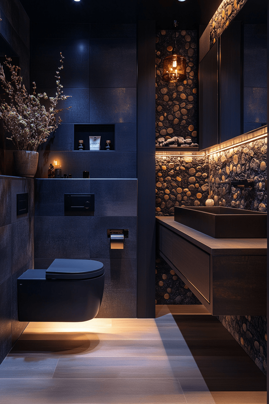 20. Dark Serenity Bathroom Nook