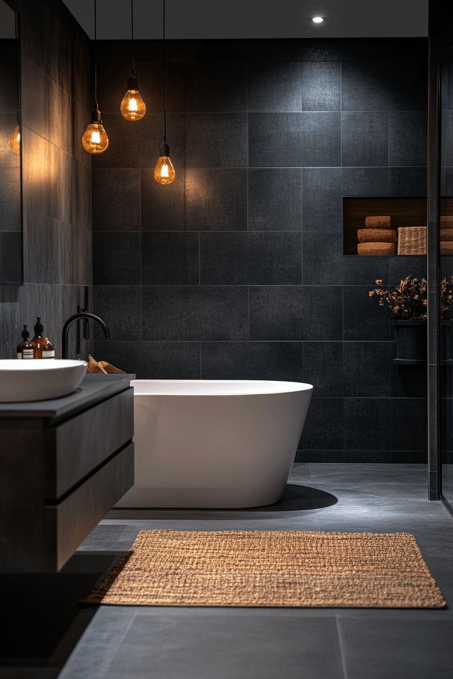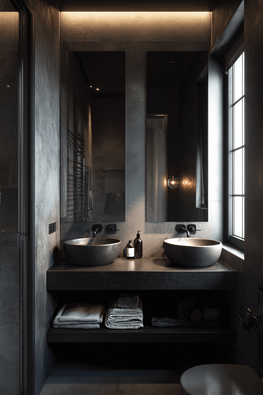 4. Charcoal Chic Bathroom Space
