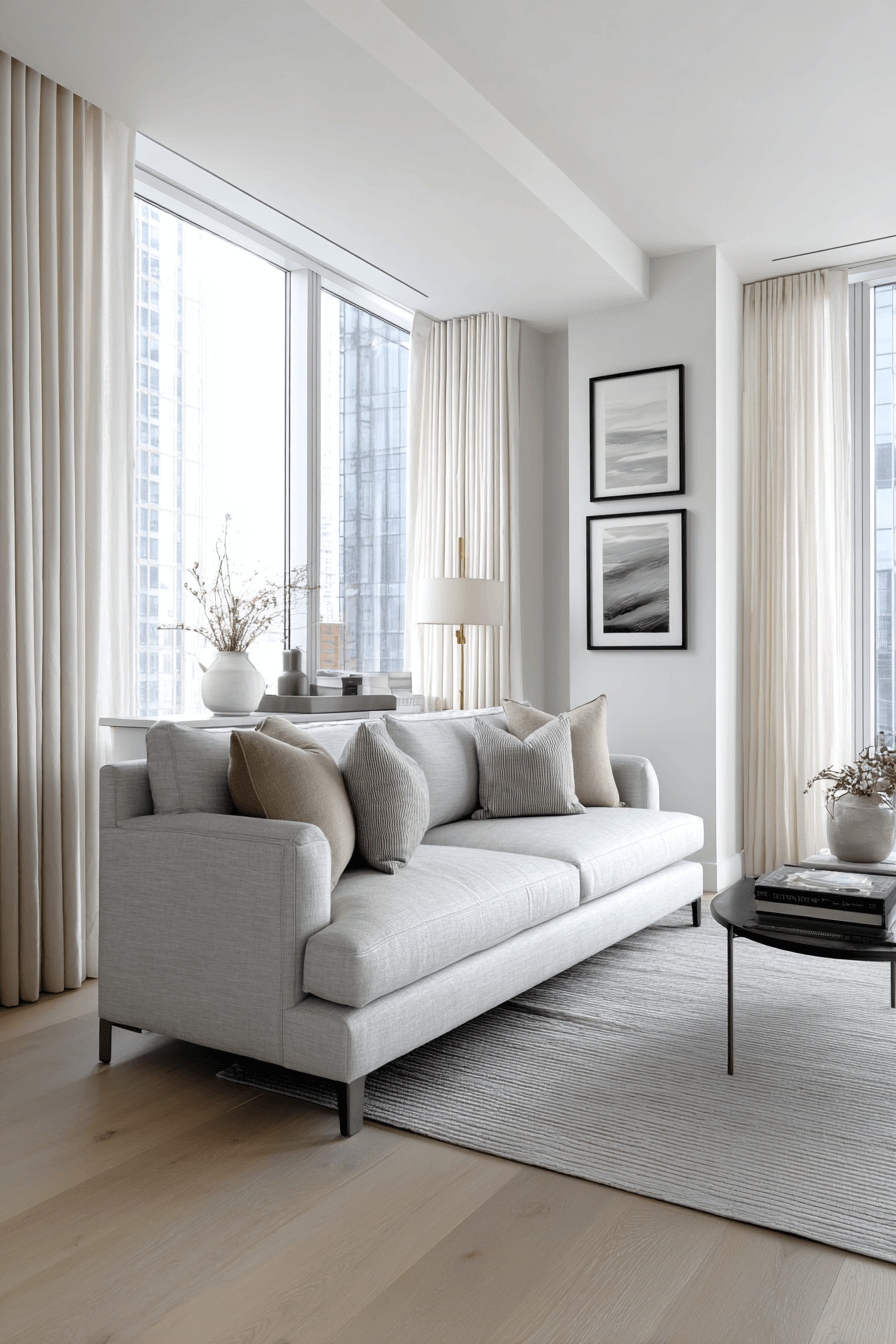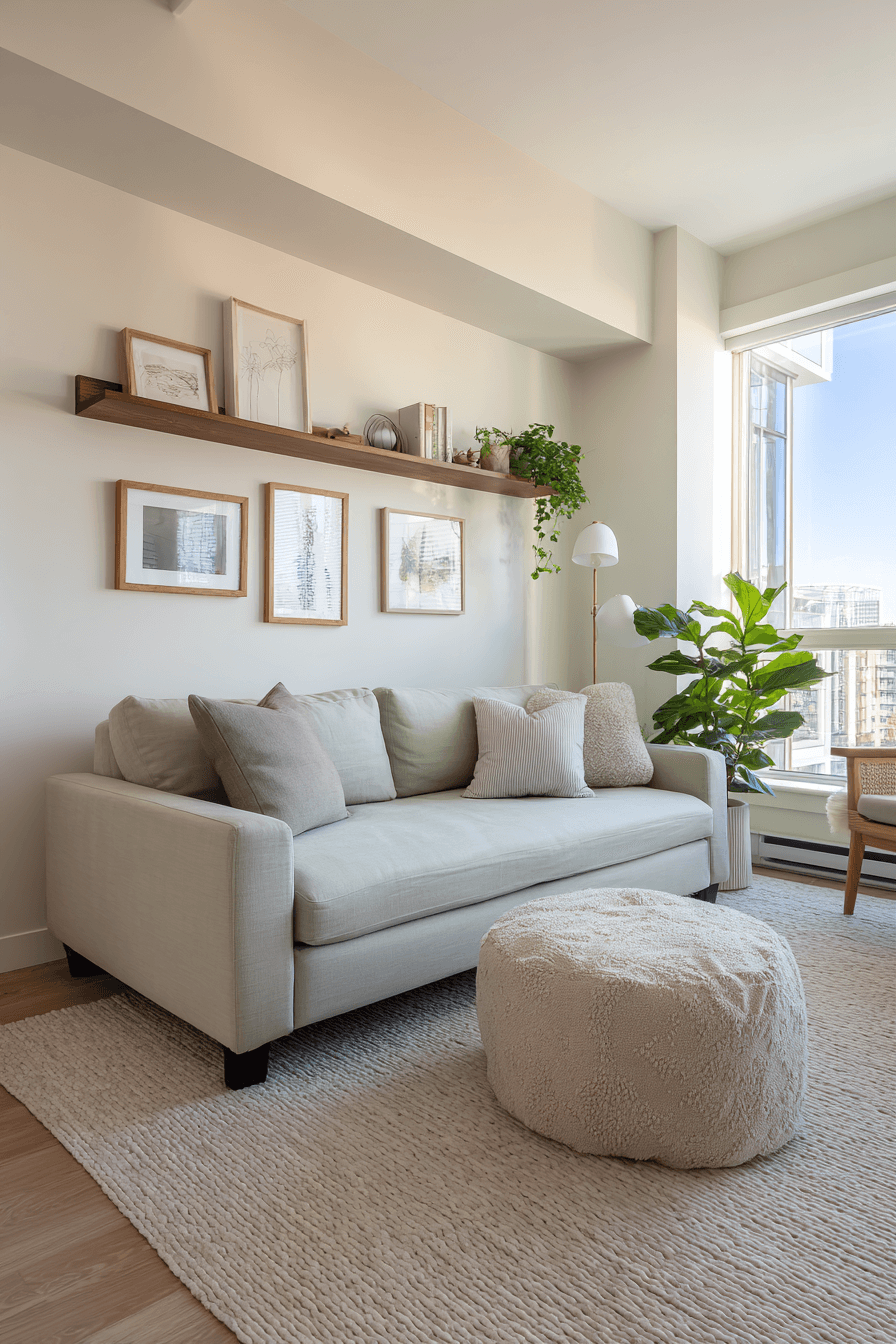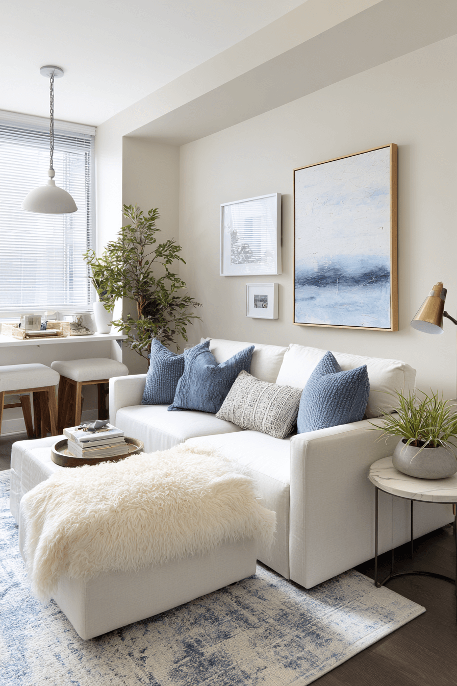 City living feels elevated in a compact sofa bed living room inspired by smart Elegant Living Room Design principles. Vertical shelving, slim furniture, and layered lighting make every inch count. The sofa bed doubles as stylish seating and a restful retreat for guests. Contemporary art and subtle industrial accents add personality without clutter. This approach blends urban edge with thoughtful function. Discover how to make your studio space shine!