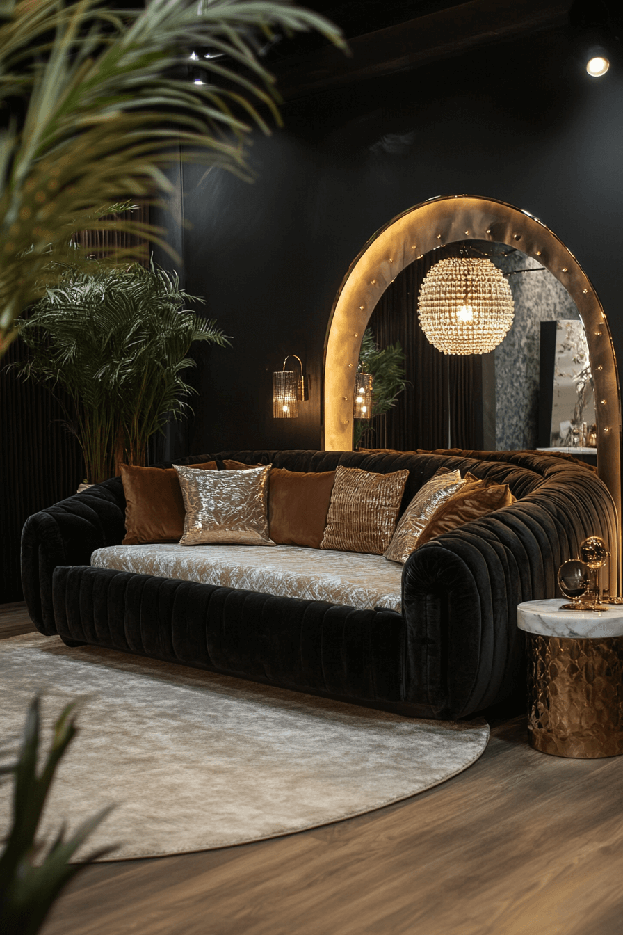 Luxury details elevate a fold-down sleeper within a sofa bed living room that reflects Elegant Living Room Design at its finest. Velvet or leather finishes add richness and visual depth. Matte black or brushed gold accents introduce modern refinement. The mechanism remains smooth and nearly invisible. Practicality becomes part of the aesthetic story. Click to bring elevated sophistication home!