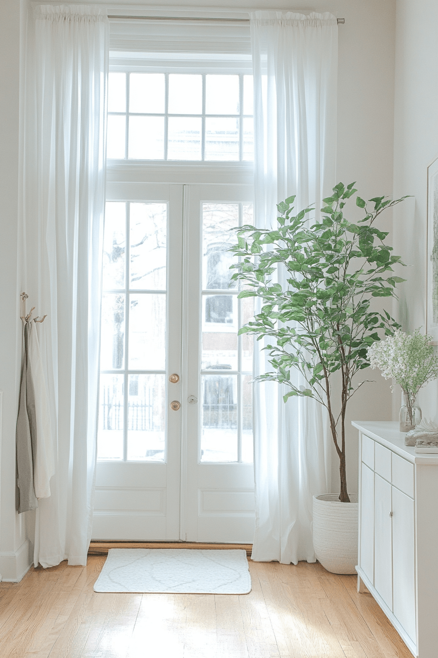 Light-enhancing elements refresh a tiny apartment entryway designed to feel airy and open. Mirrors expand visual space while bright finishes keep things crisp. Subtle greenery adds life without crowding. The result feels fresh and uplifting. A welcoming mood starts at the door.