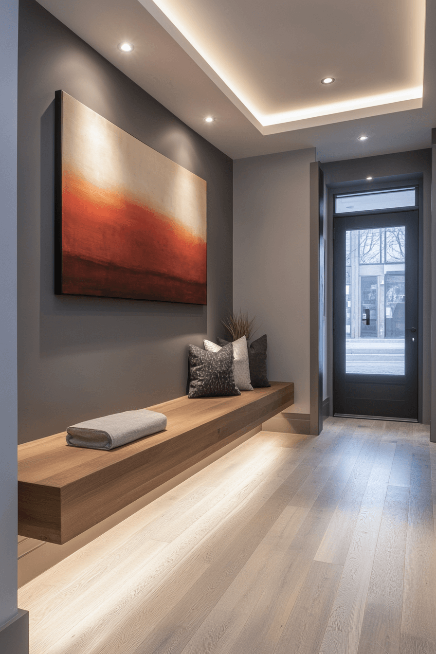 Smart features modernize a tiny apartment entryway built for convenience. Motion lighting and tech-forward details support busy lifestyles. Clean design keeps the look sleek. Function feels futuristic yet approachable. Small spaces get smarter.