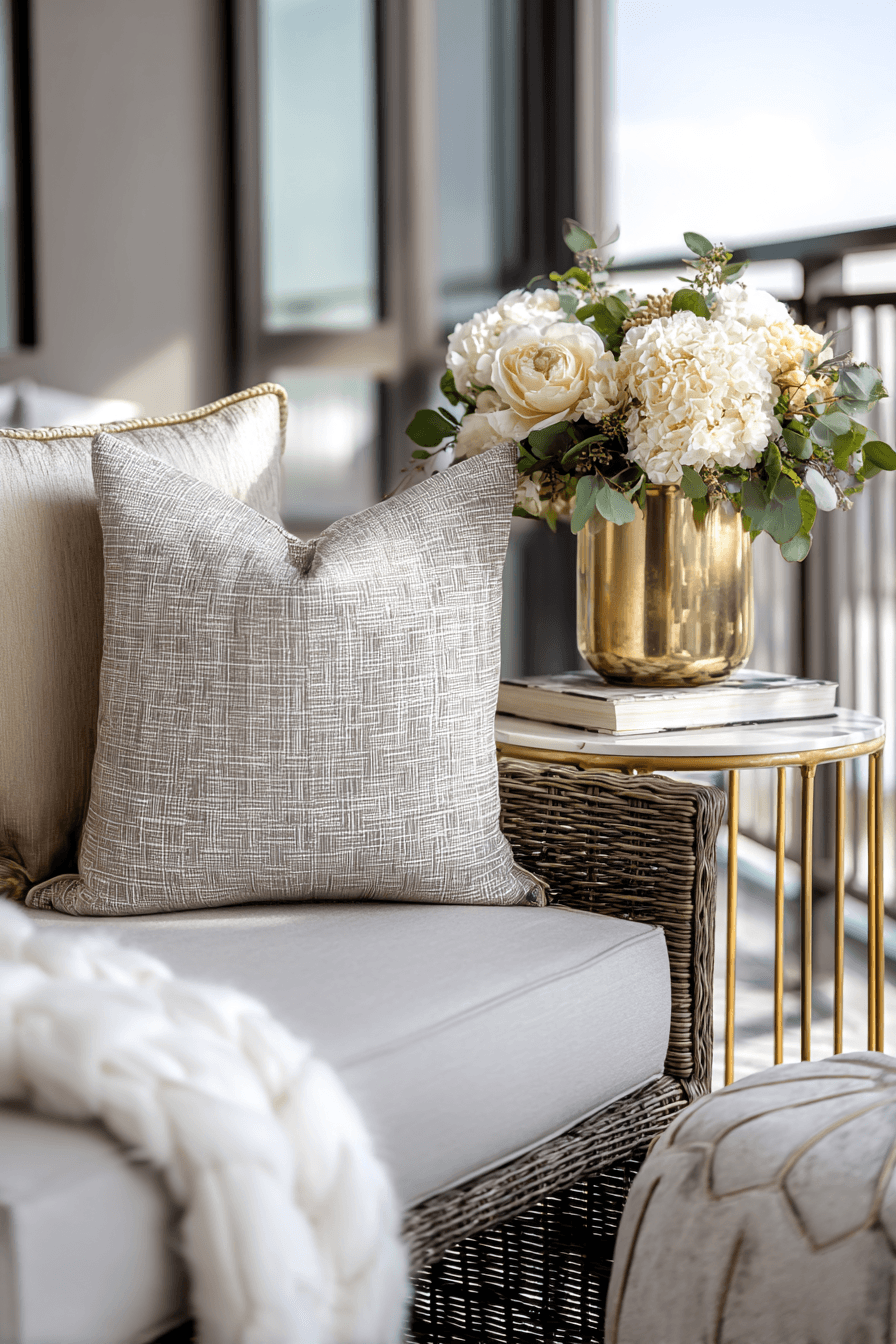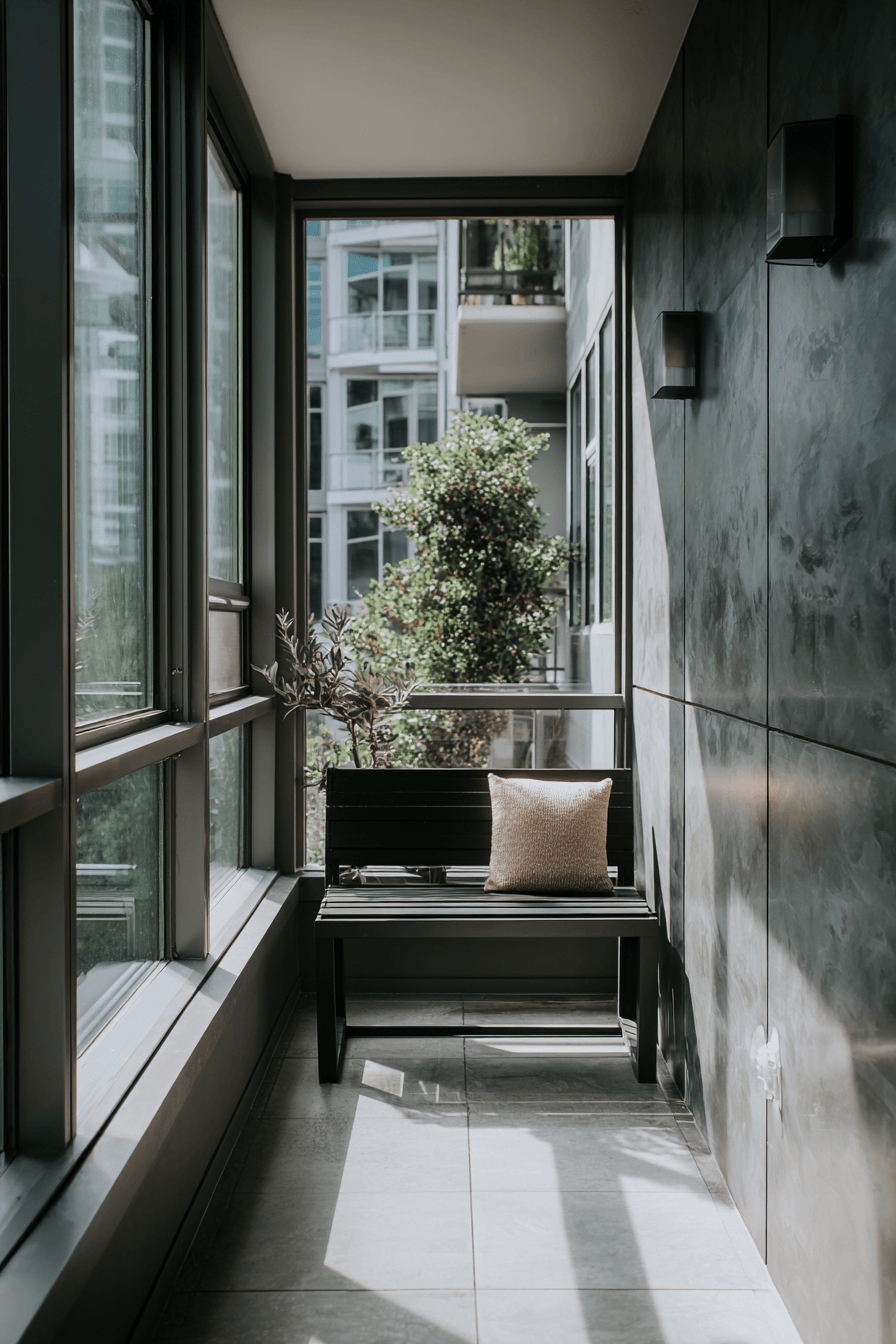 Elevating small spaces with refined materials adds a luxurious touch to very small balcony decor. Soft upholstery and metallic accents create a cozy yet upscale feel. A standout detail like a chic side table enhances the overall look instantly. Warm neutral tones bring richness while maintaining balance. Carefully chosen decor keeps the space stylish without clutter. The mood feels polished and inviting with a hint of indulgence. Add a touch of luxury to your balcony today.