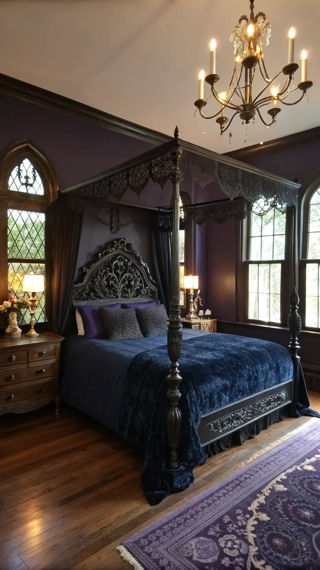 - Black lace canopy bed