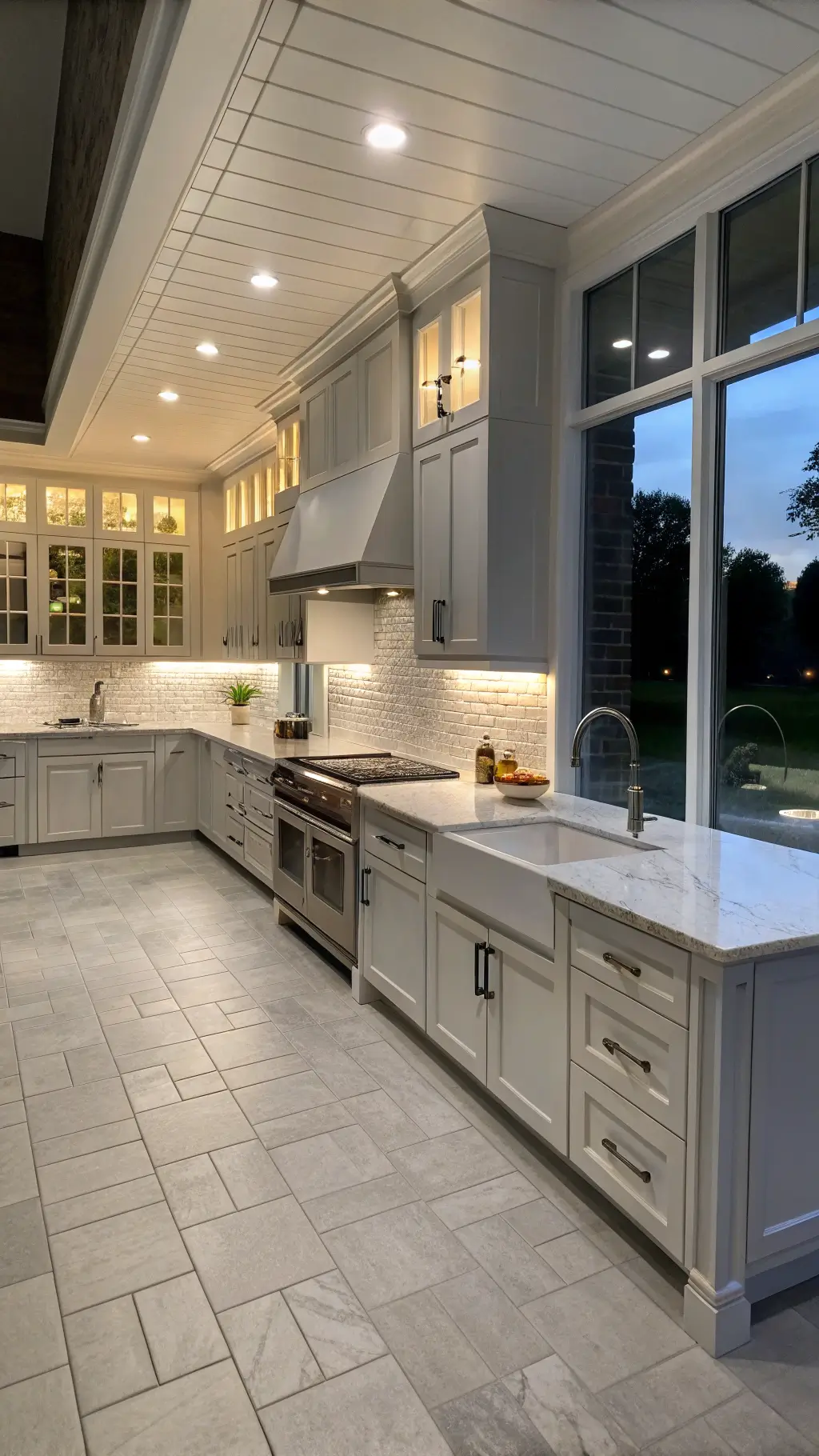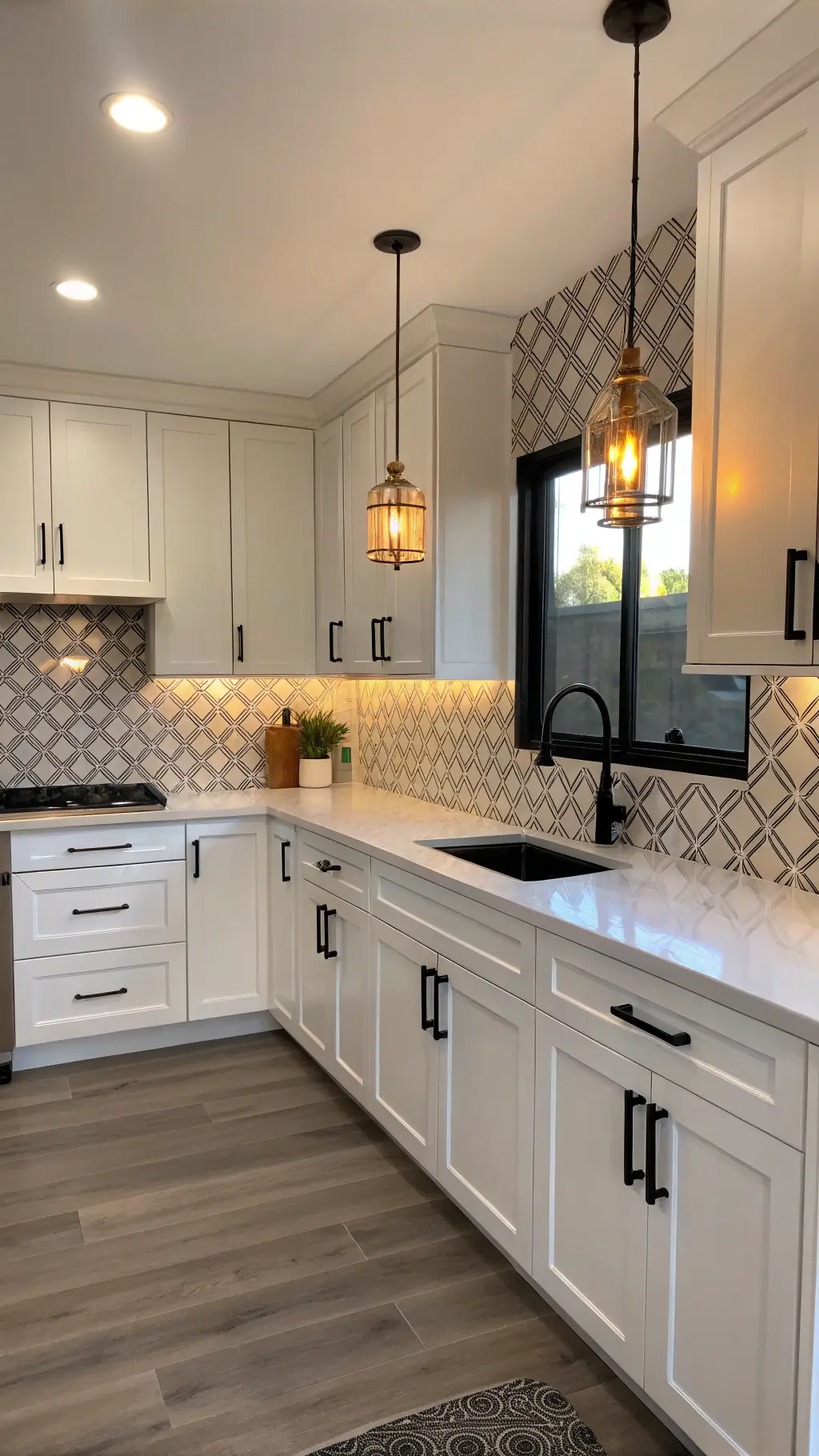 White cabinets + smart lighting = kitchen magic. Under-cabinet LED strips can create dramatic effects while improving functionality.