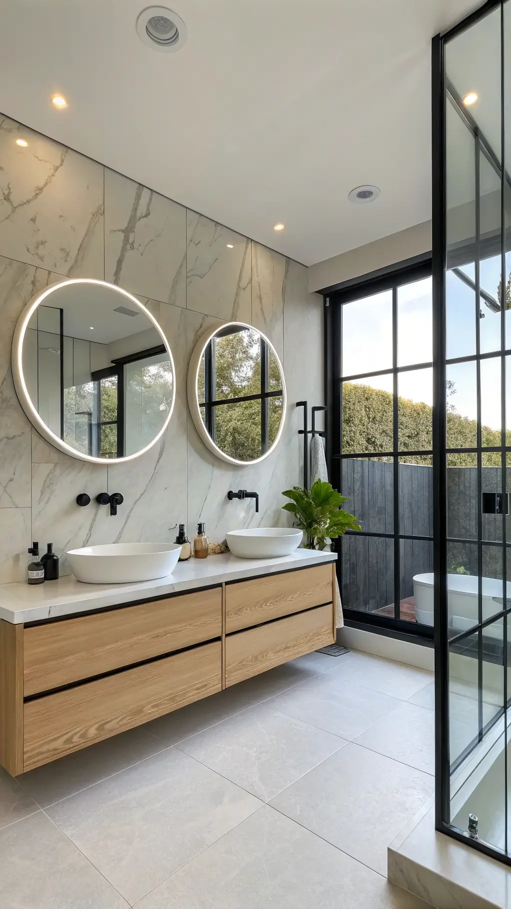 - Center your soaking tub or statement mirror